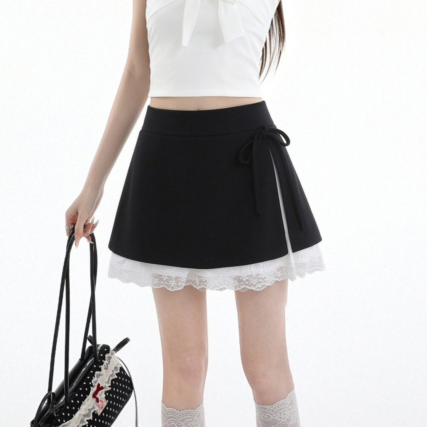 실사 도트 무늬 레이스 레이스 케이크 반신 스커트 여성 여름 연령 감소 프릴 하이웨이스트 한 마디 퍼프 미니 스커트