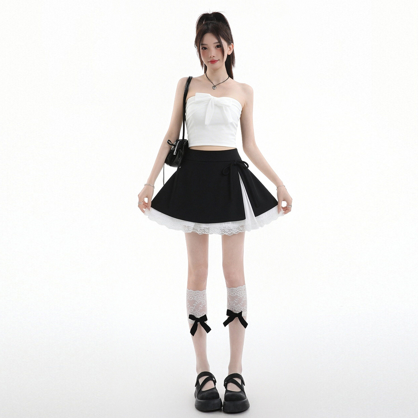 발레 바람 학원 스타일 꽃밭 치마 페이크 레이어드 허리밴드 반신 치마바지