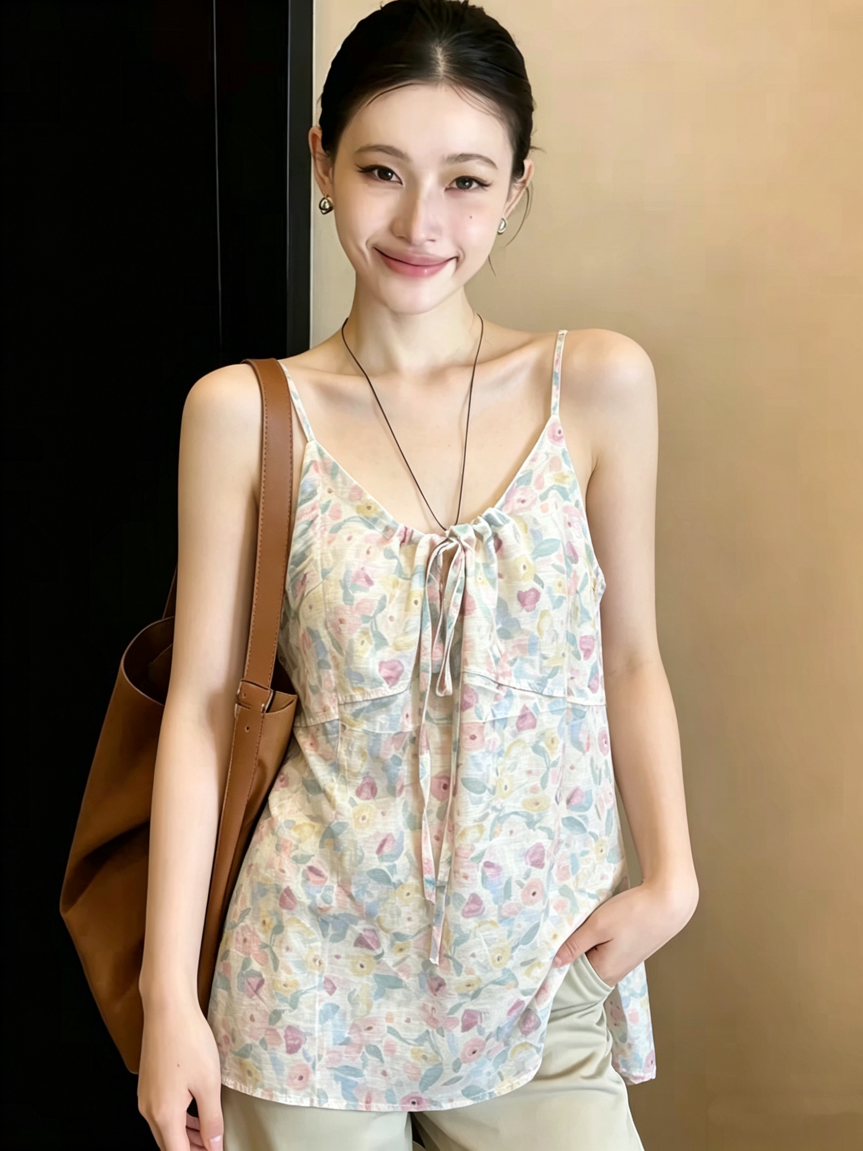 재고 있음 2026 여름 새로운 달콤한 스타일 나비 넥타이 조끼 여성
