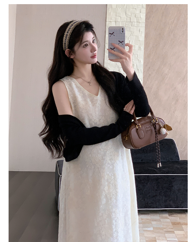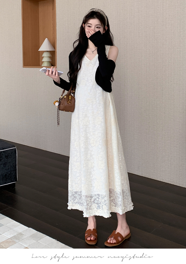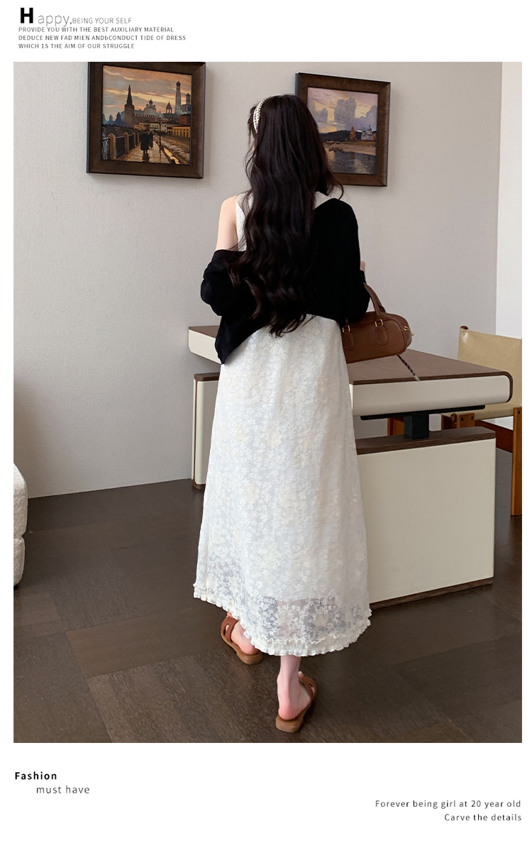 실사 선물 물품 새로운 한국 스타일 레이스 외국 가스 휴가 바람 슬립 드레스 자외선 차단 오픈 가디건 투피스 세트 임산부 세트