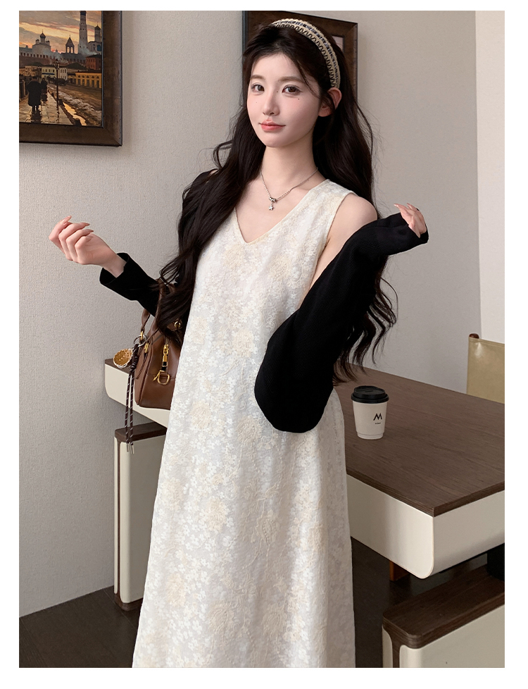 sourcewithu 장미 인생 2 색 발굴하다 어깨 허리 수축 민소매 맨위 부드러운 품격 롱 코트 반신 스커트 여성