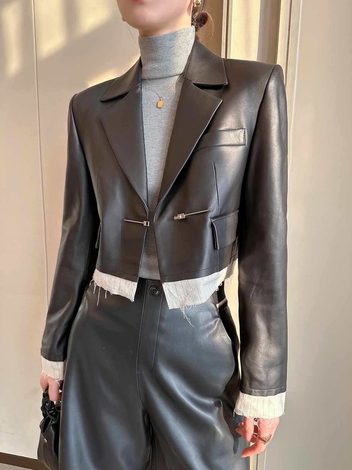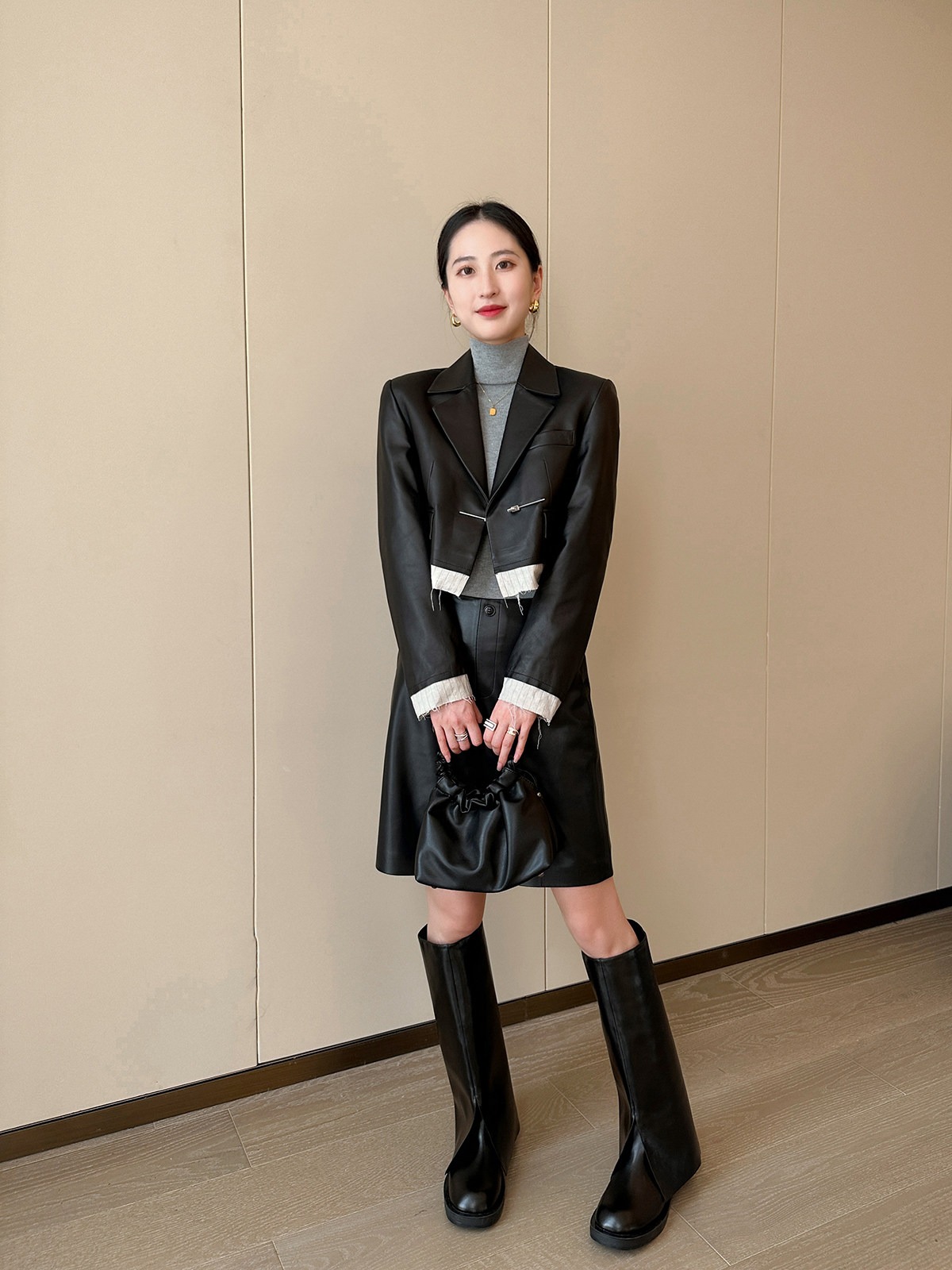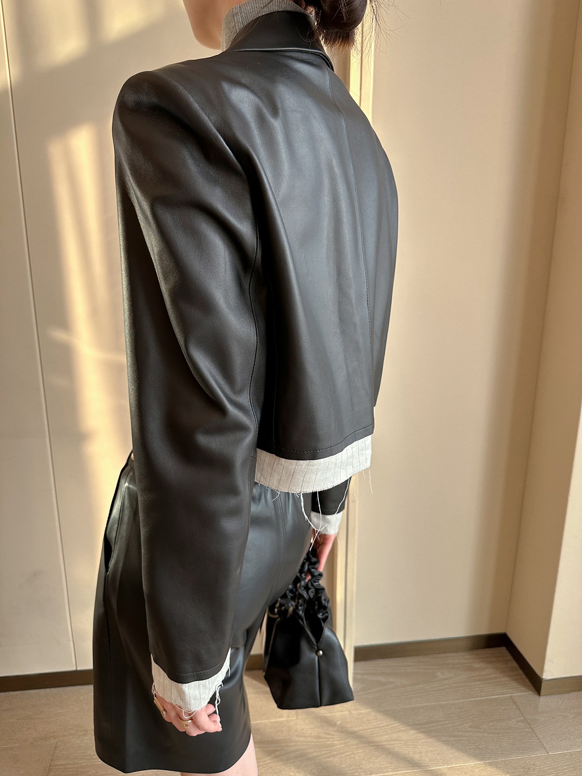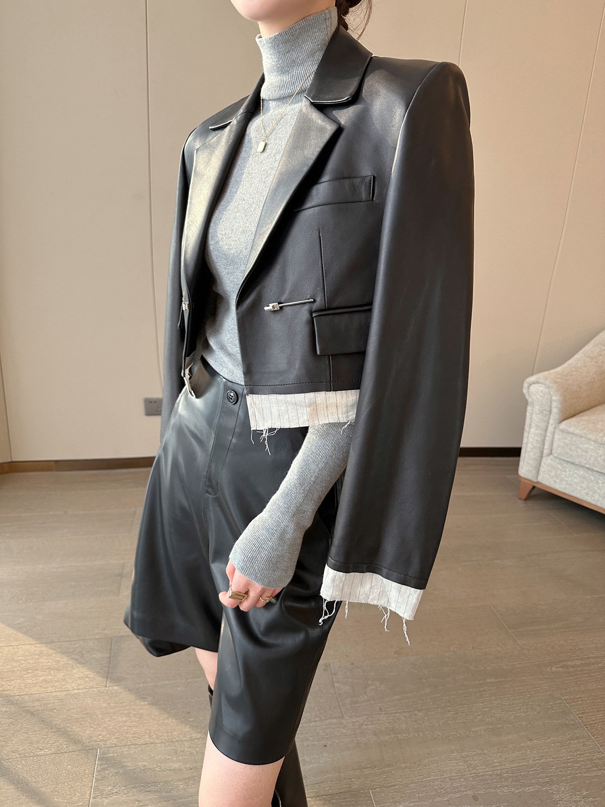 검정색 PU 가죽 5 점 캐주얼 바지 여성 가을 2025 새로운 품격 다용도 넓은 다리 슬림해 보이는 반바지