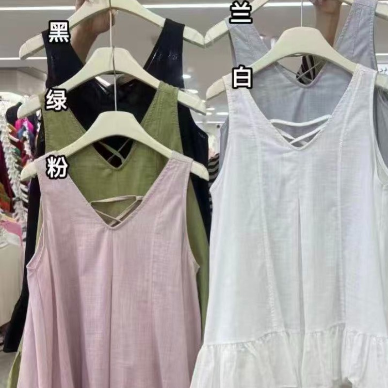 면 린넨 민소매 조끼 스커트 드레스 품격 루즈핏 백리스 롱 스커트 해변가 휴가 라운드 넥 슬림해 보이는 드레스