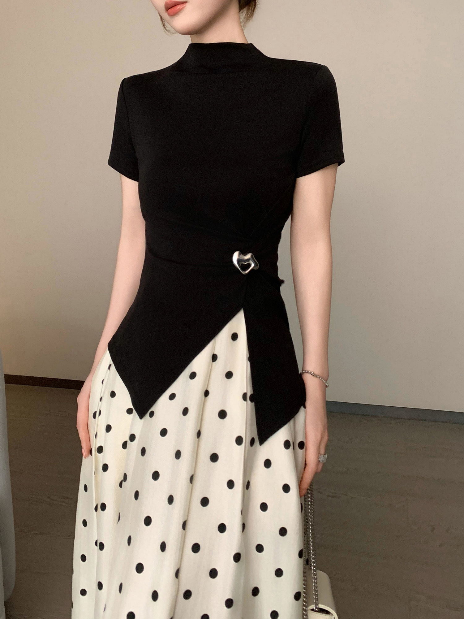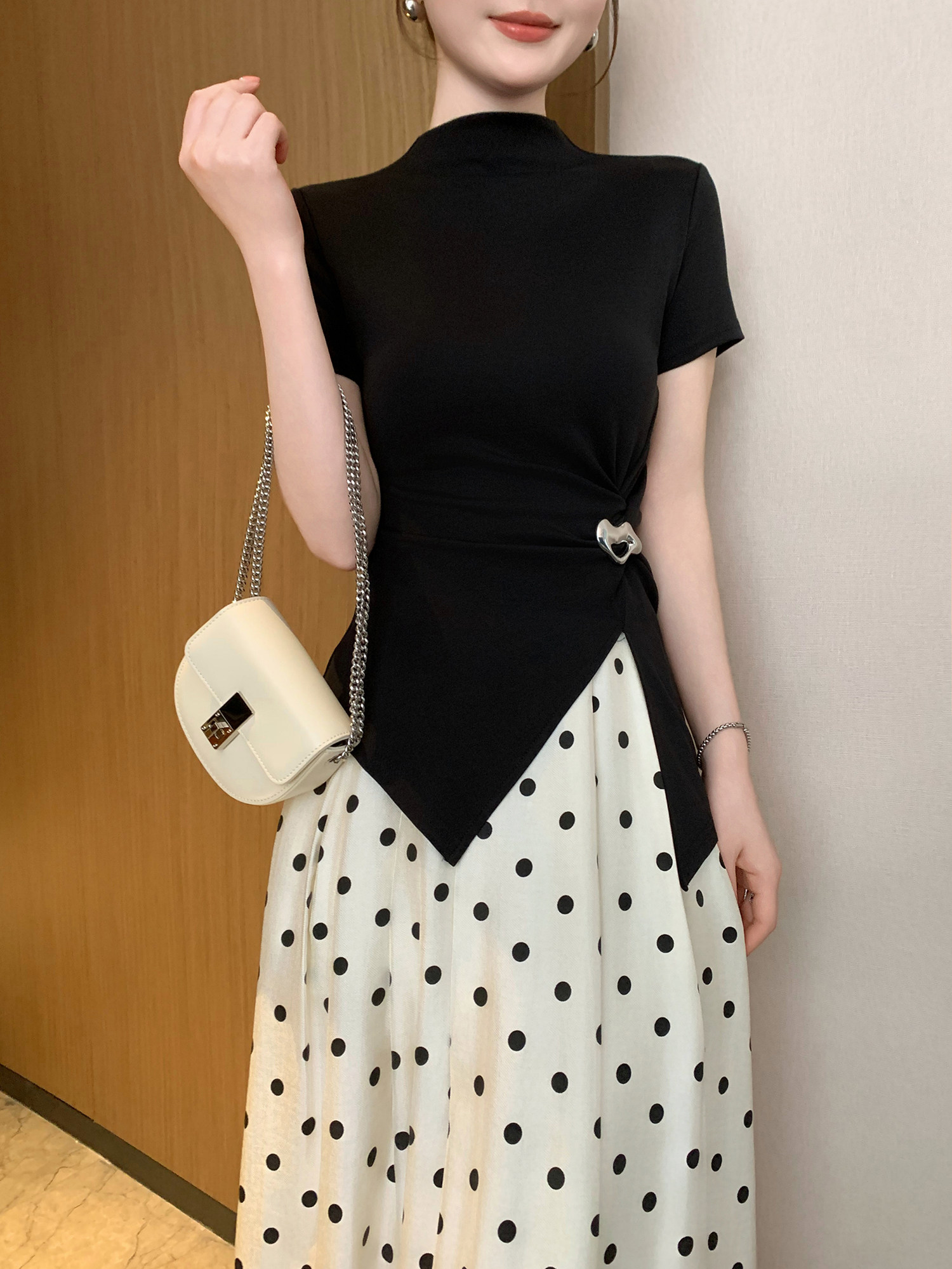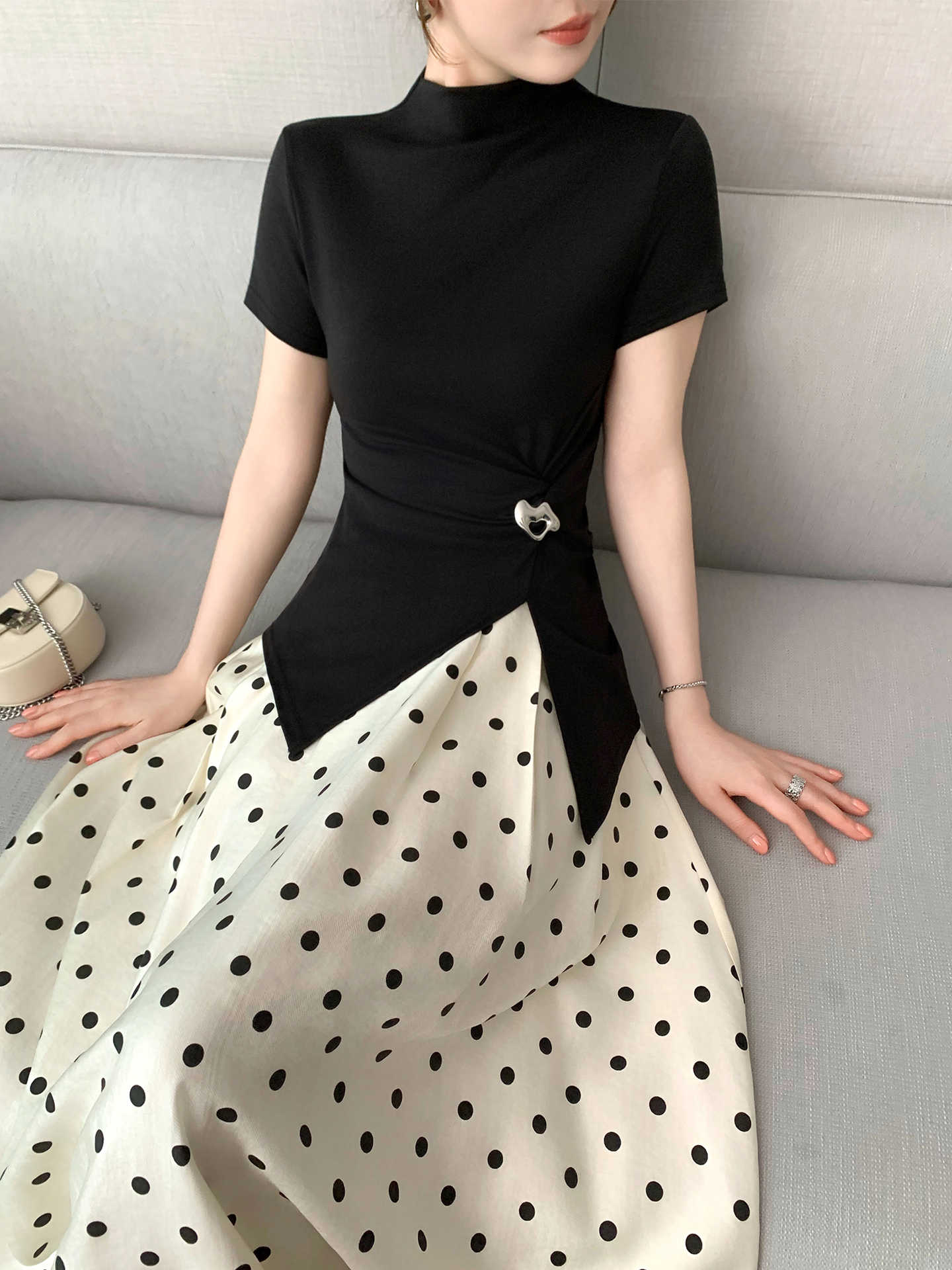 eggka 페이크 레이어드 디자인 센스 화이트 도트 무늬 치마바지 여성 여름 하이웨이스트 품격 슬림해 보이는 타이트 스커트 한 마디 반신 스커트