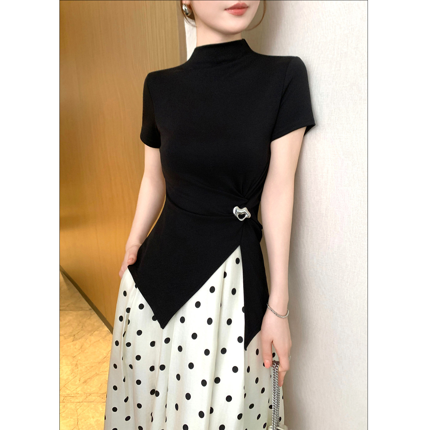 꽃밭 창 htmeme 바로크 환타지 디자인 센스 레이스 비스듬한 어깨 셔츠 여성 여름 슬림해 보이는 반팔 맨위
