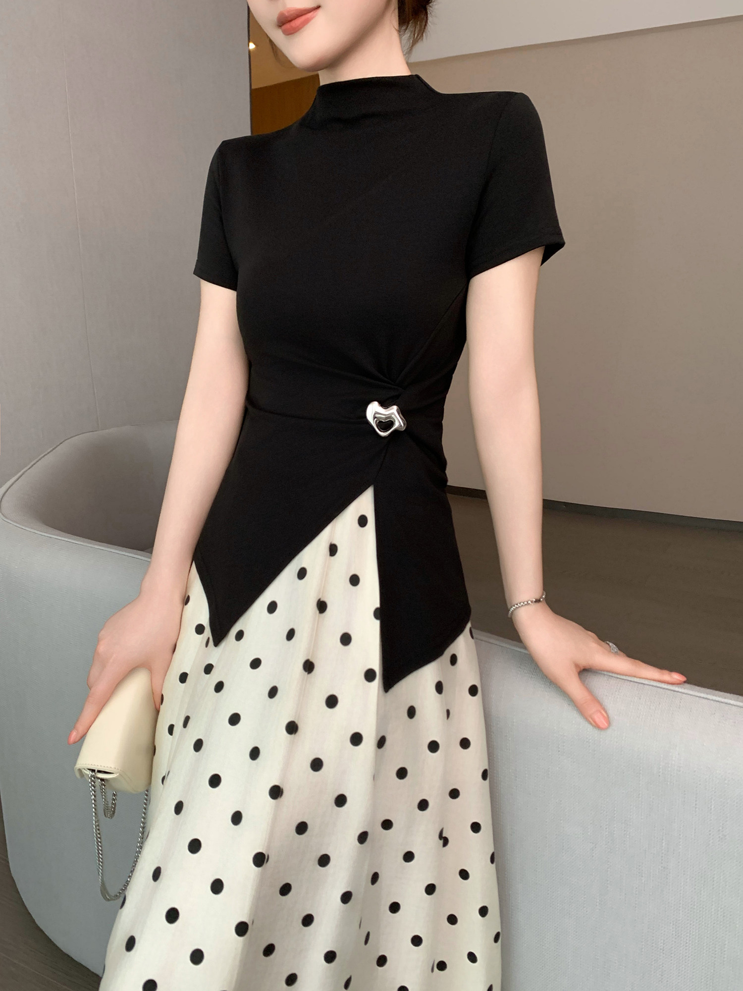 빅 사이즈 여성 의류 실사 2026 여름 디자인 센스 품격 패션 캐주얼 페이크 레이어드 슬림해 보이는 드레스