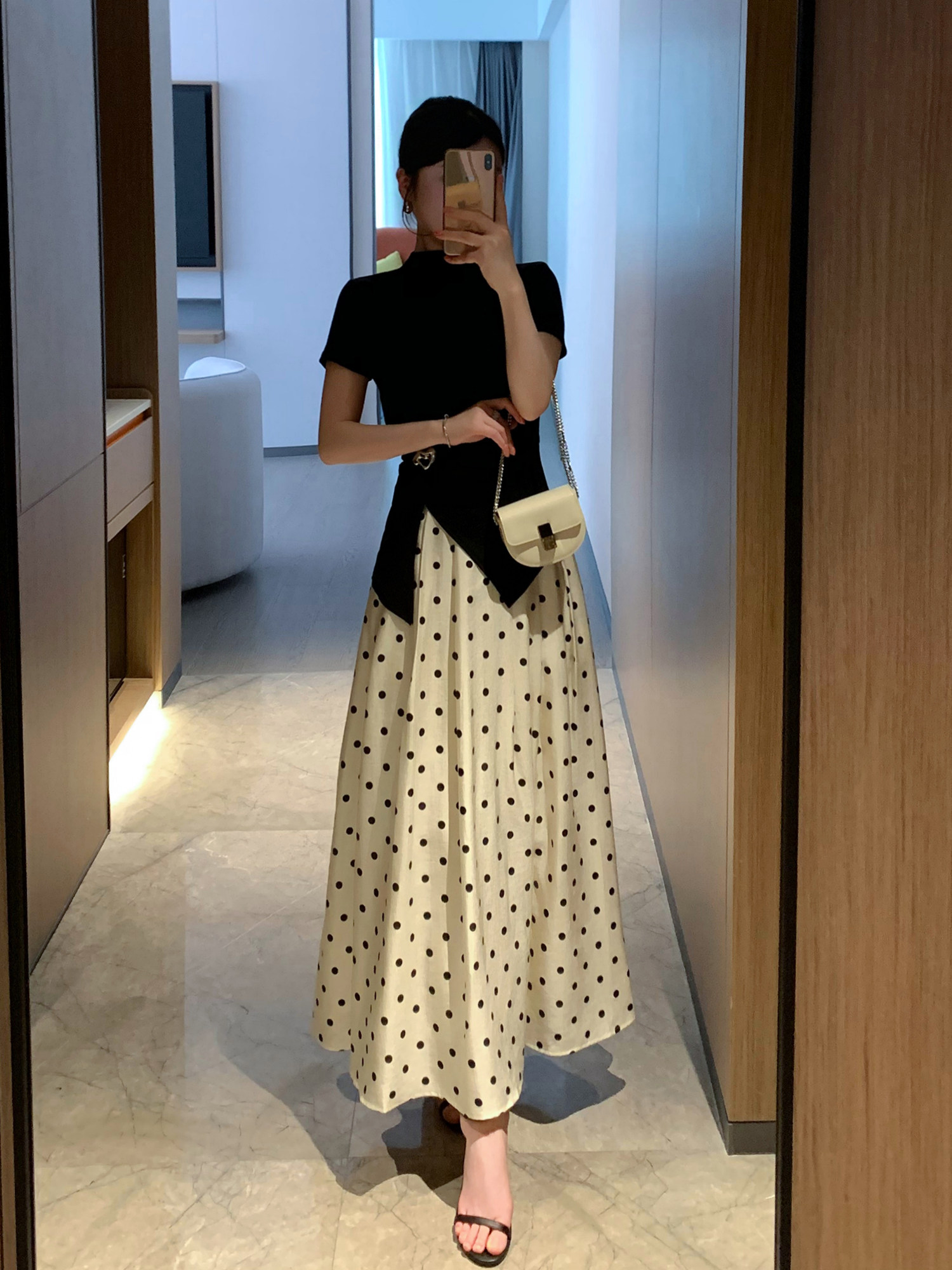 susus 맞춤 4.24 저녁 8시 사전 플러스 구매 컬렉션 켜기 새로운 같은 날 즐기십시오 9 접기 도트 무늬 반신 스커트