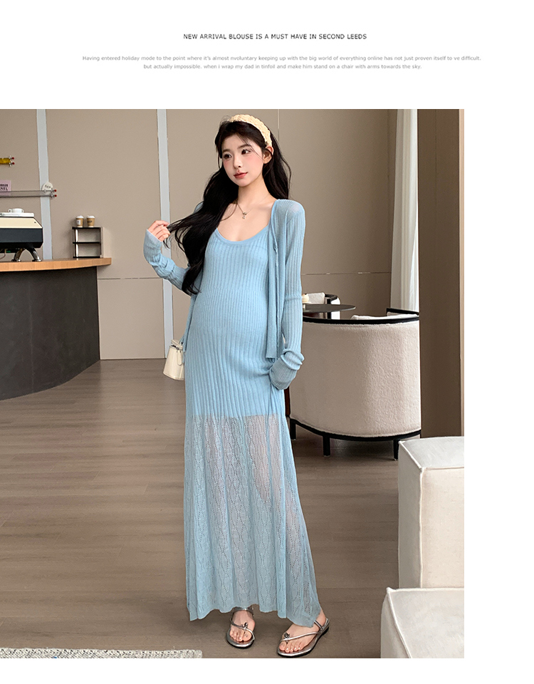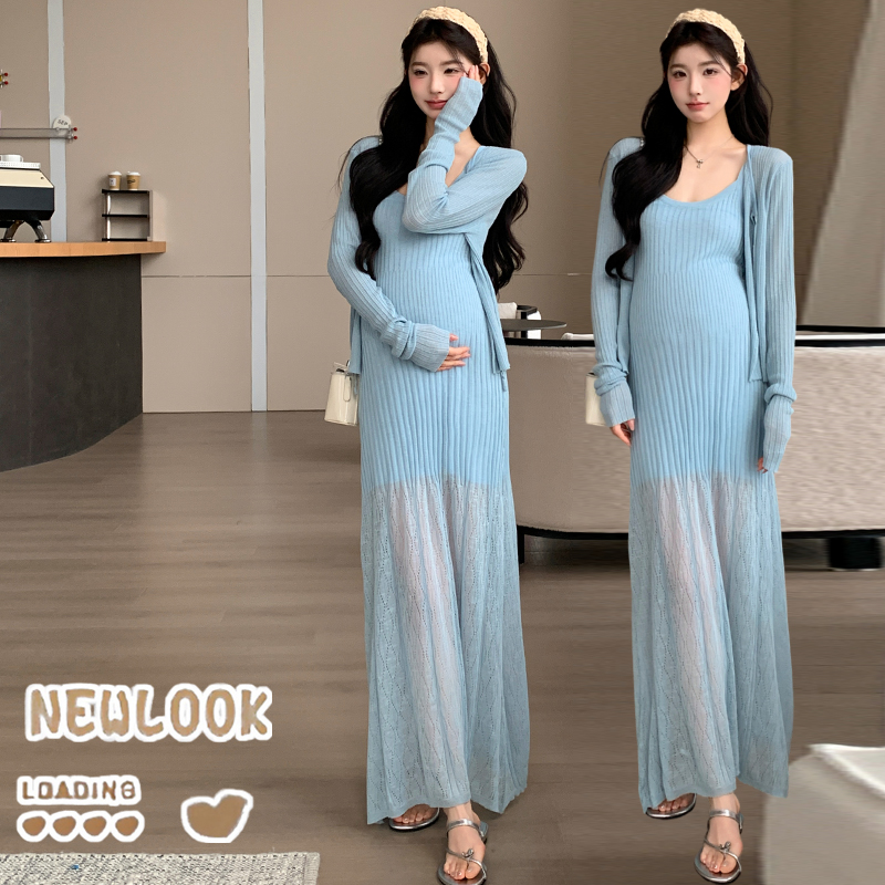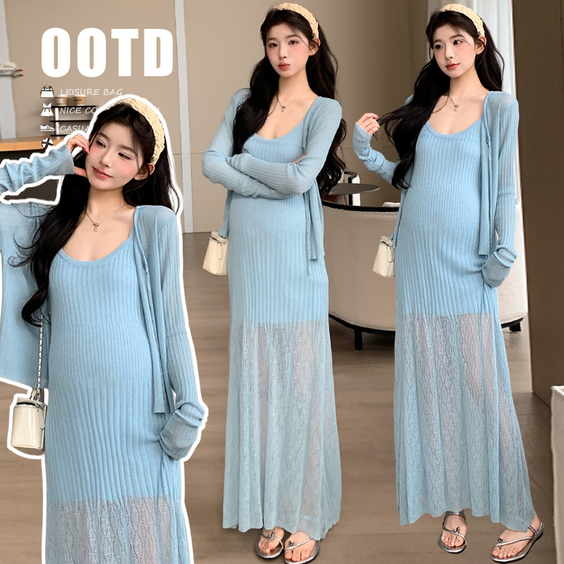 2026 여름 새로운 임신 엄마 슈퍼 시원한 니트 드레스 숄 한국 스타일 슬림해 보이는 다용도 롱 스커트