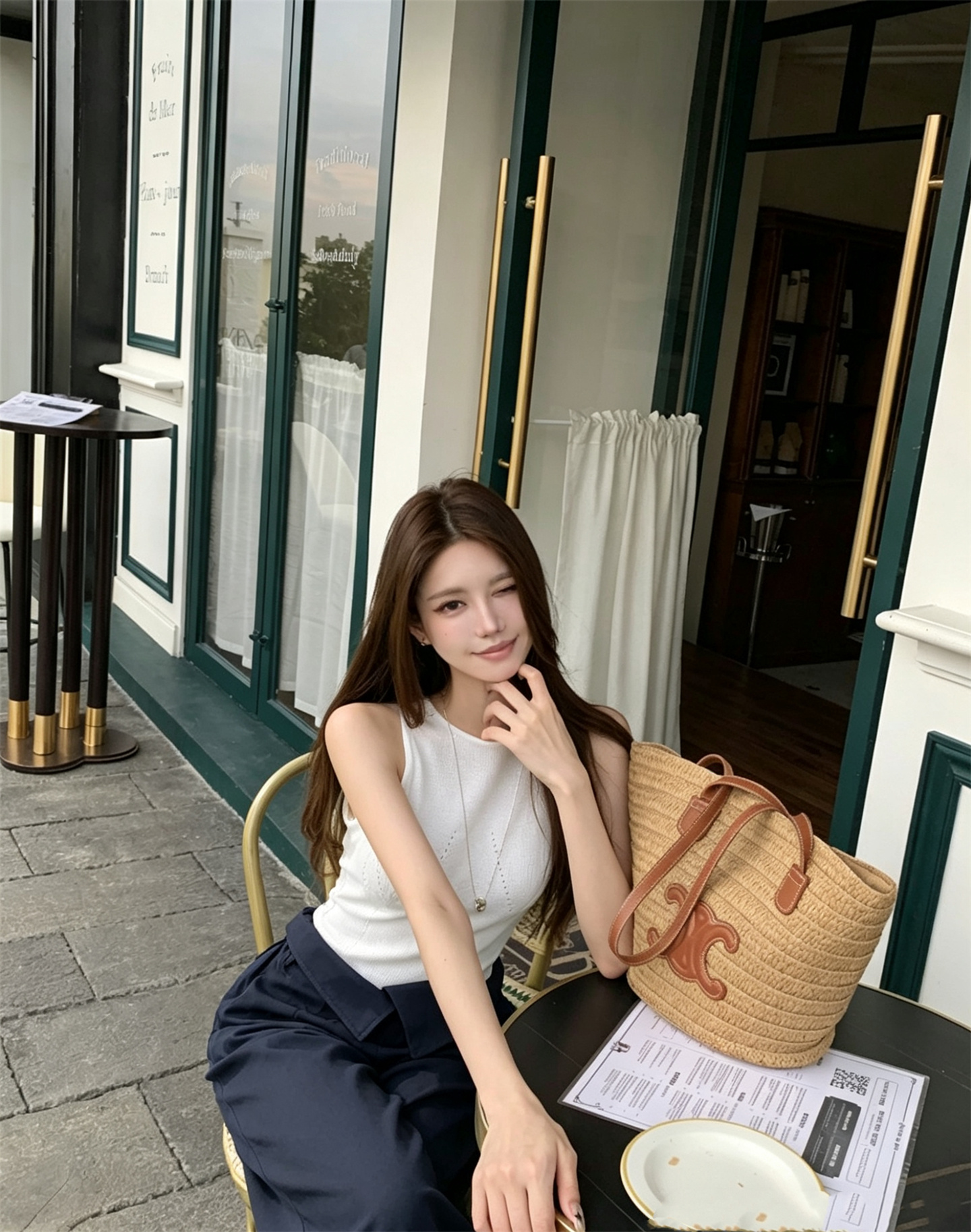 실사 정가 품격 민소매 핫픽스 흰 꽃 조끼 맨위