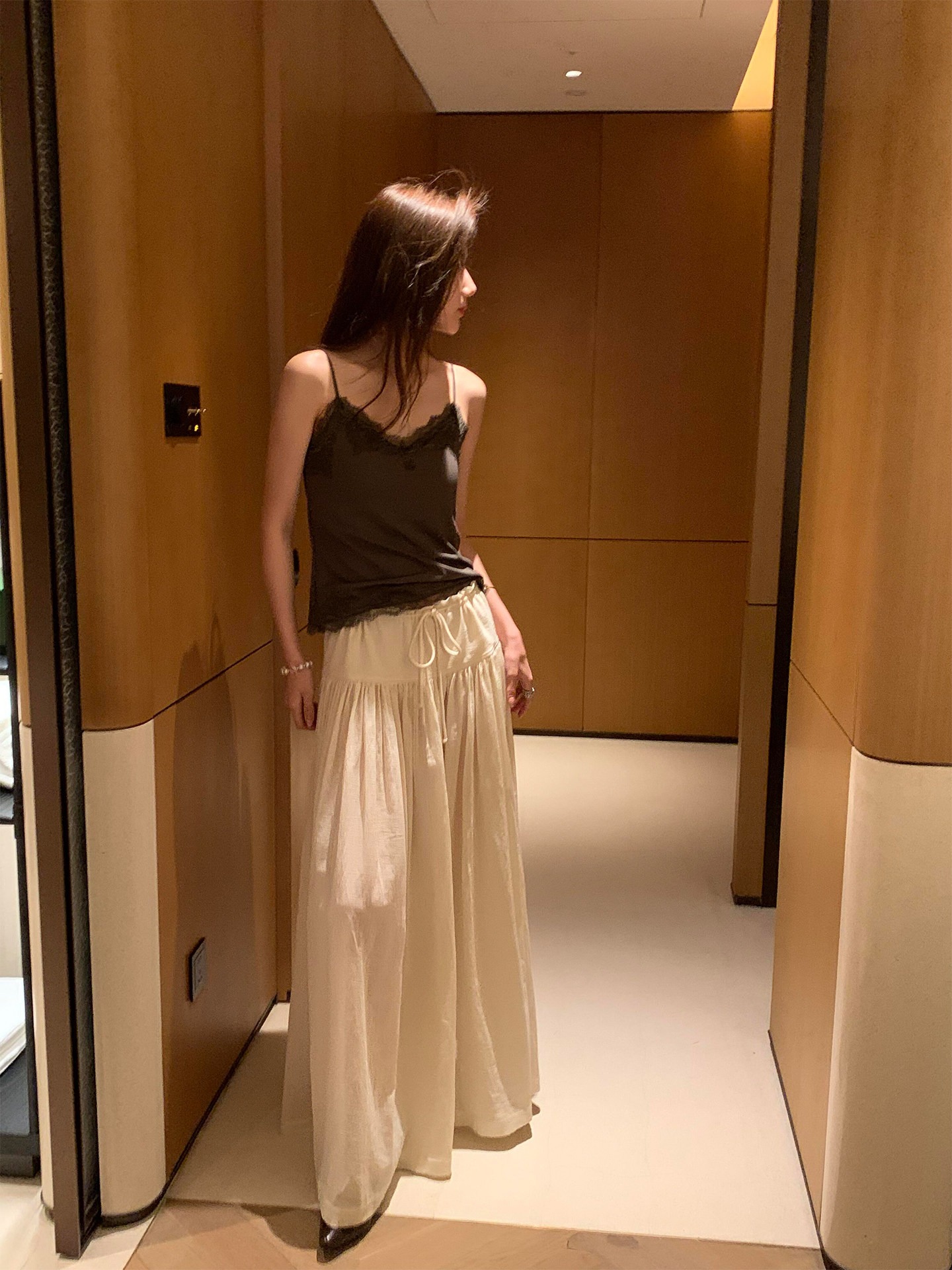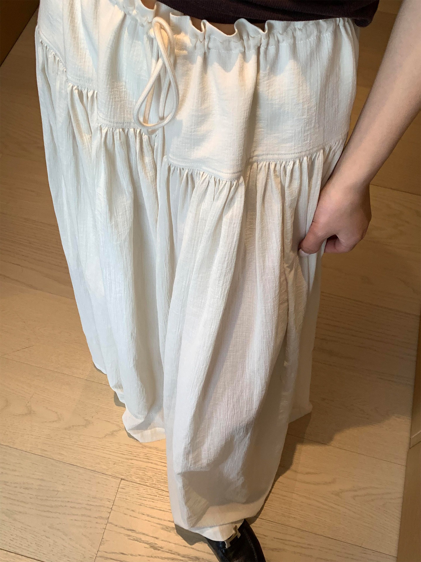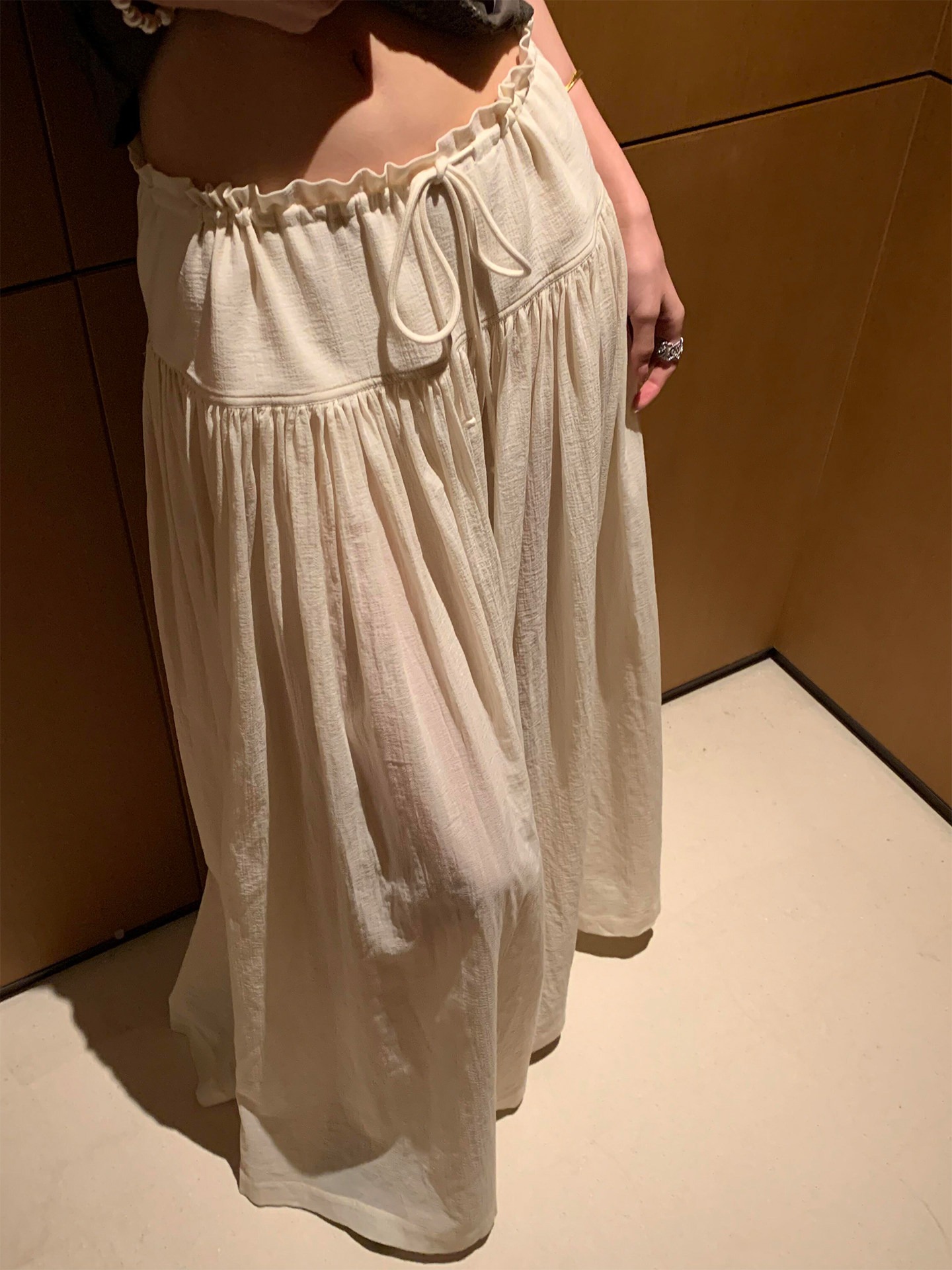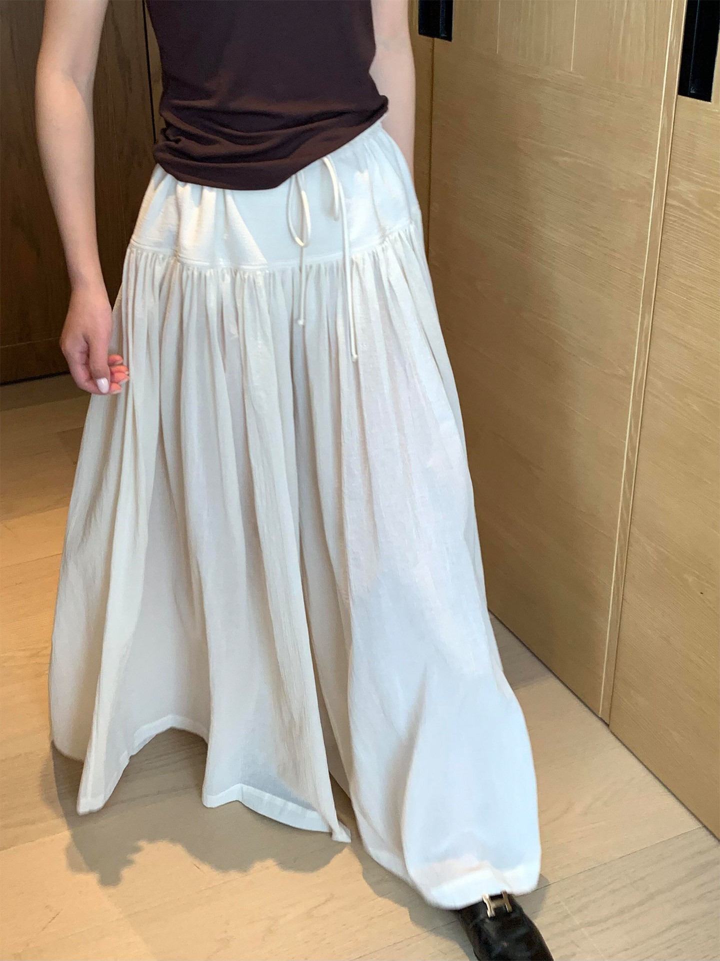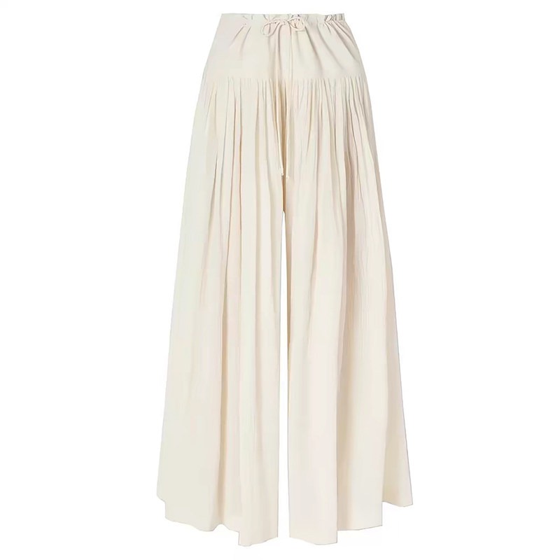 베이지 색 펌프 로프 주름 와이드 레그 팬츠 치마 여성 2026 봄 여름 새로운 빅 사이즈 루즈핏 도루 가을 센스 캐주얼 바지 치마바지