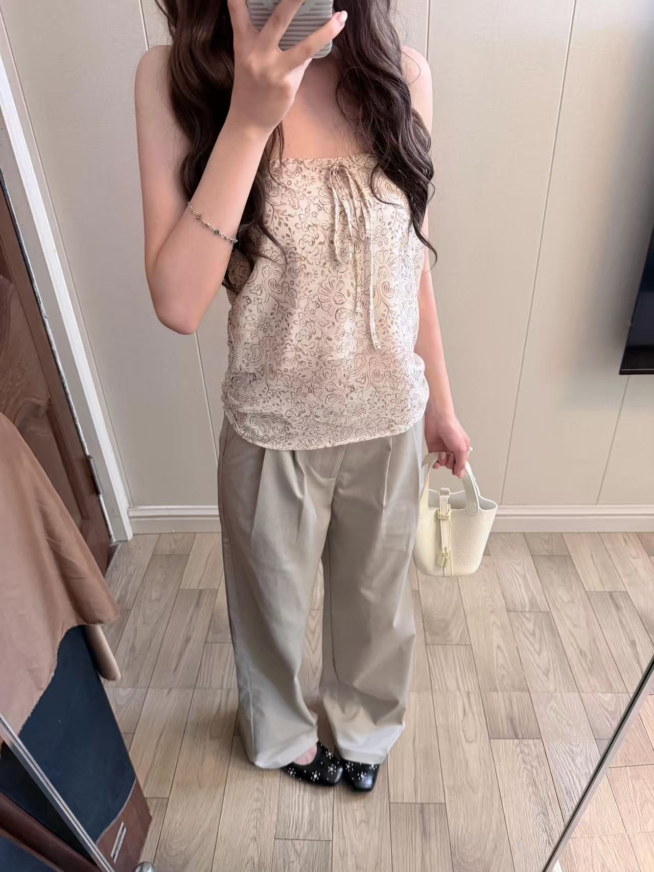 레트로 세트 염색 펌프 로프 튜브탑 여성 2026ss 휴가 바람 꽃 란 살구 색상 쇼트 스타일 오프숄더 맨위