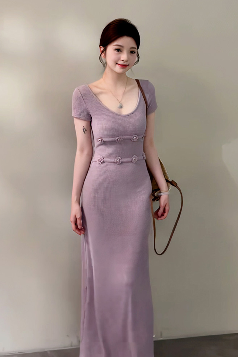 지금 2026 여름 프랑스식 몸매 가꾸기 롱 코트 반팔 드레스
