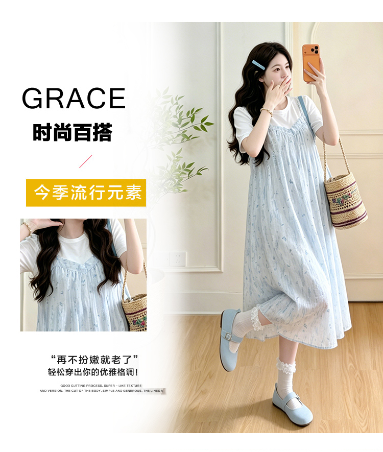 실사 여름 새로운 출산 착용 여름 드레스 치마 외국 가스 슬림해 보이는 얇은 스타일 패치워크 페이크 레이어드 슬림해 보이는 드레스