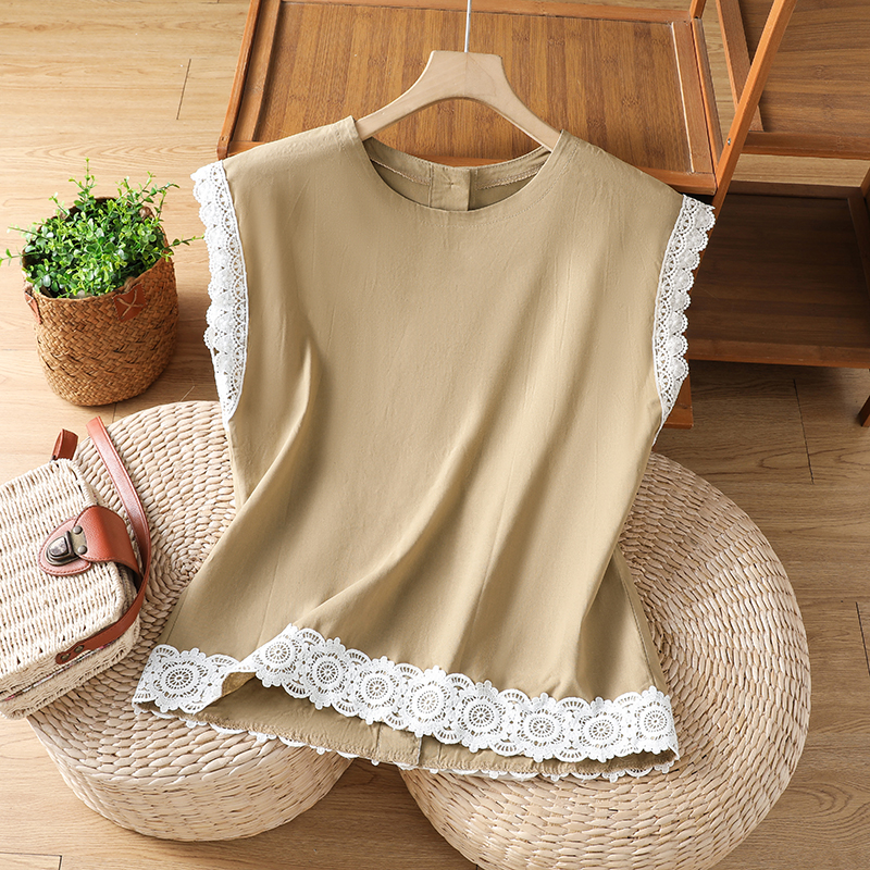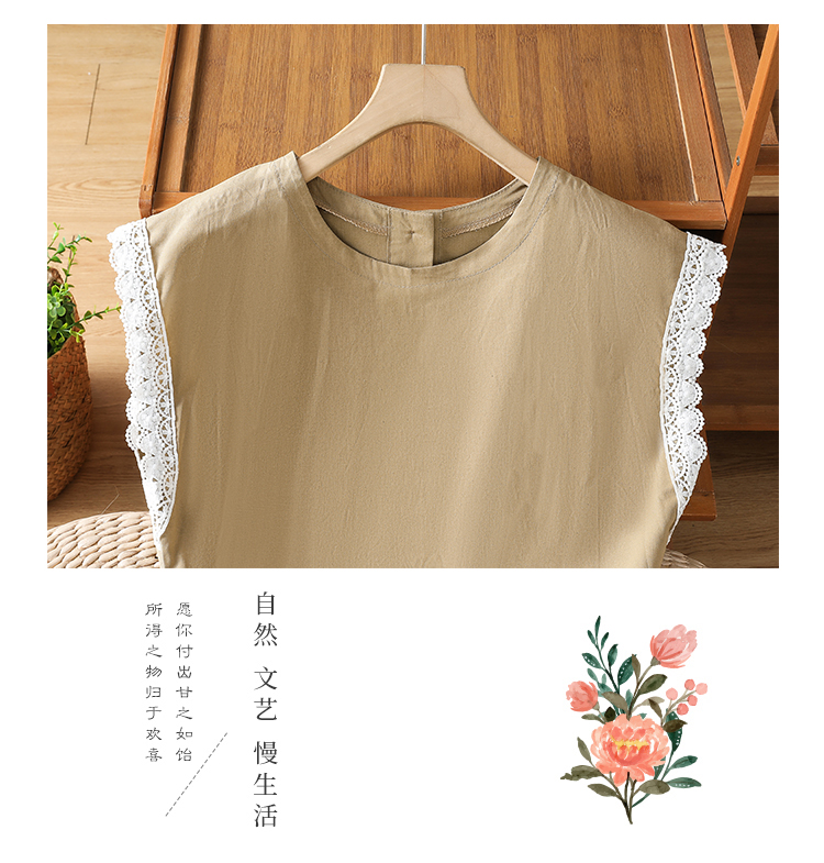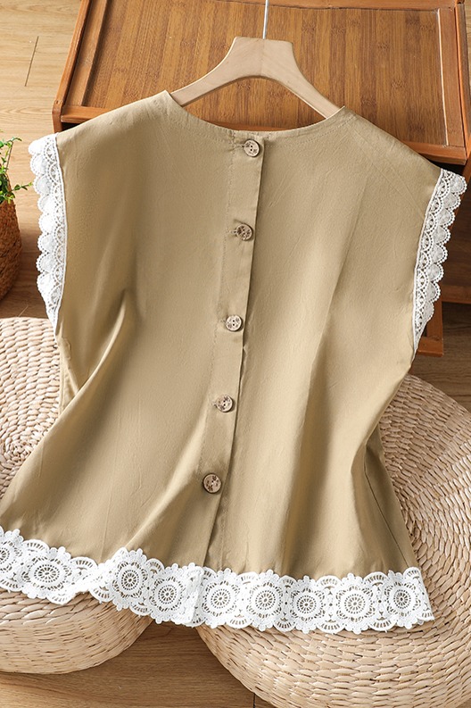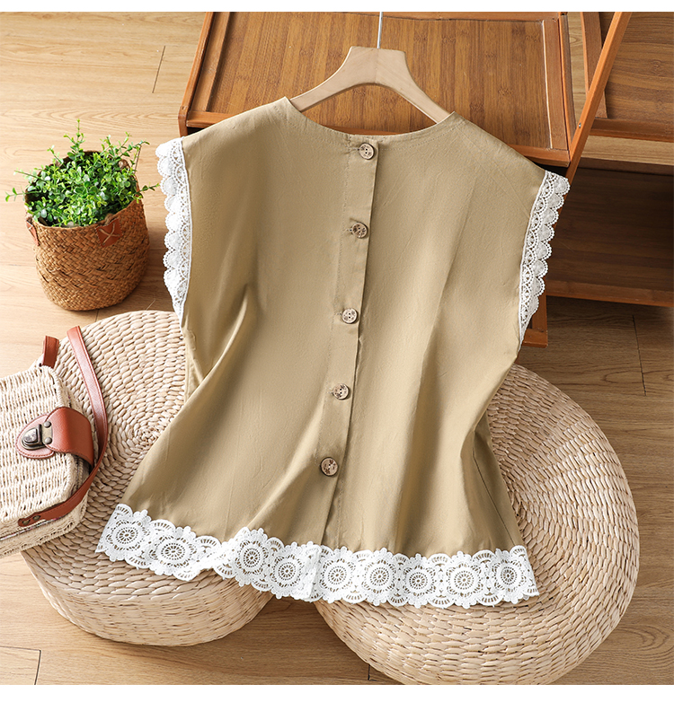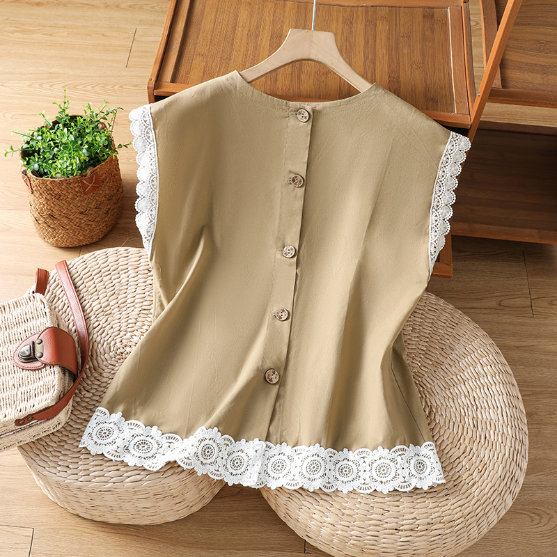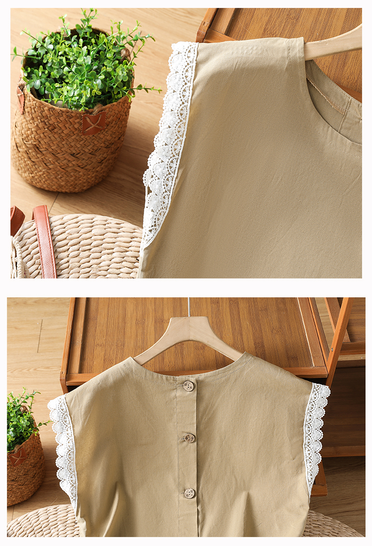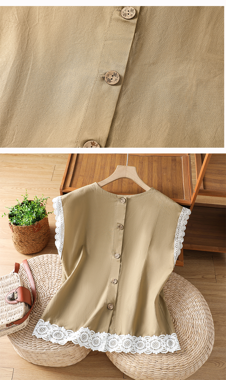 실사 2026 일본과 한국 문예 면 린넨 레이스 레이스 싸움 플러그 어깨 소매 맨위 뒤로 단추 여성 셔츠