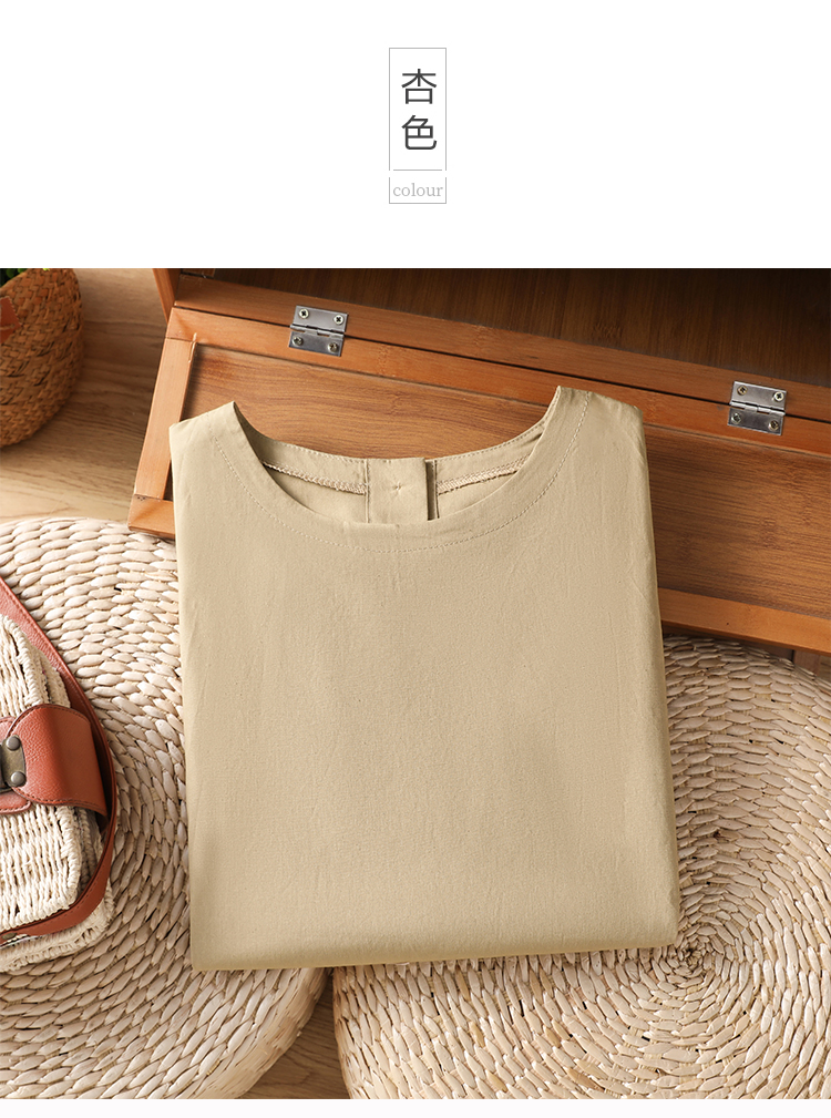실사 여름 빅 사이즈 여성 라운드 넥 면 린넨 레트로 맨위 프린트 루즈핏 반팔