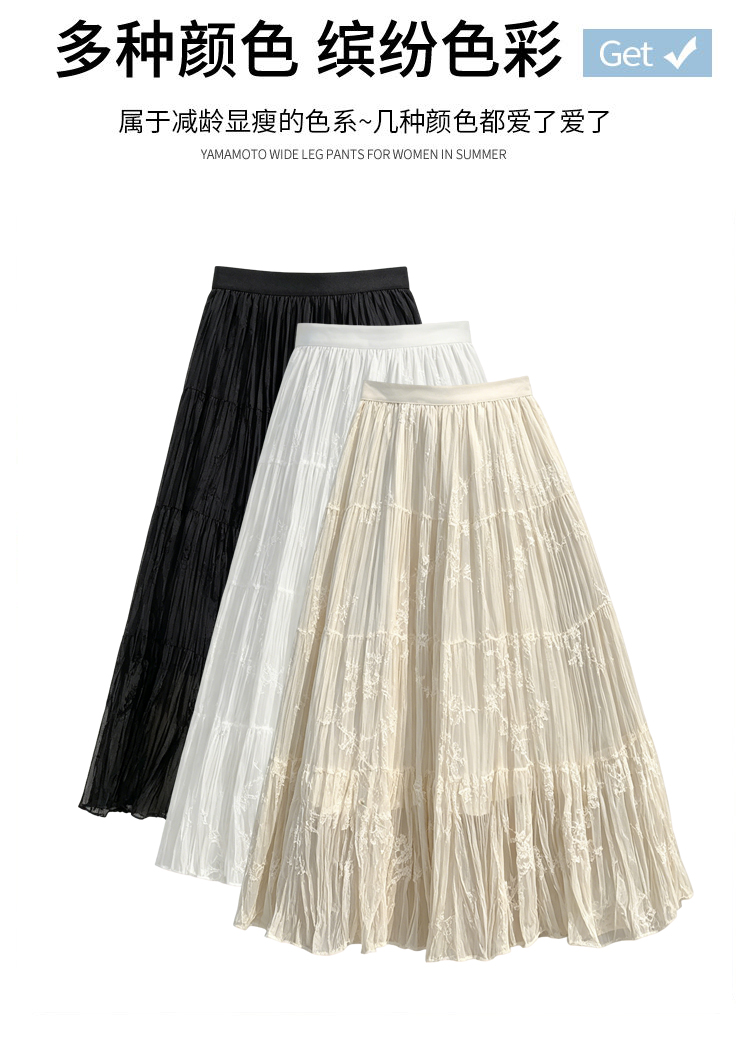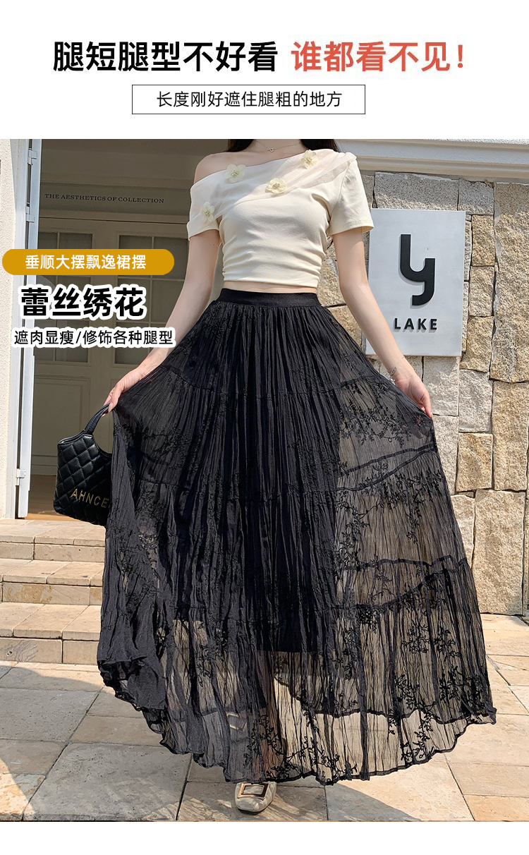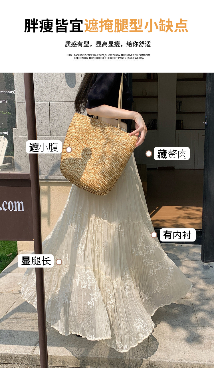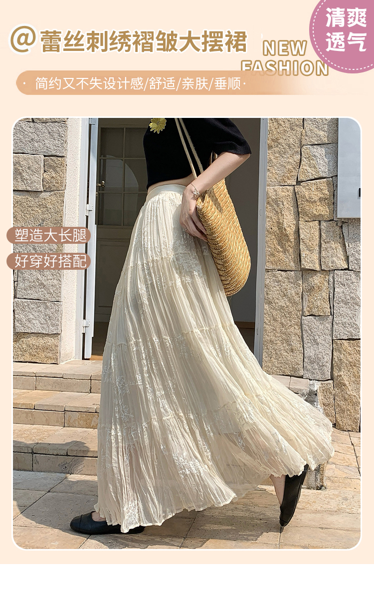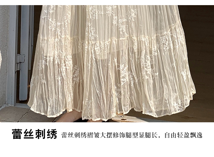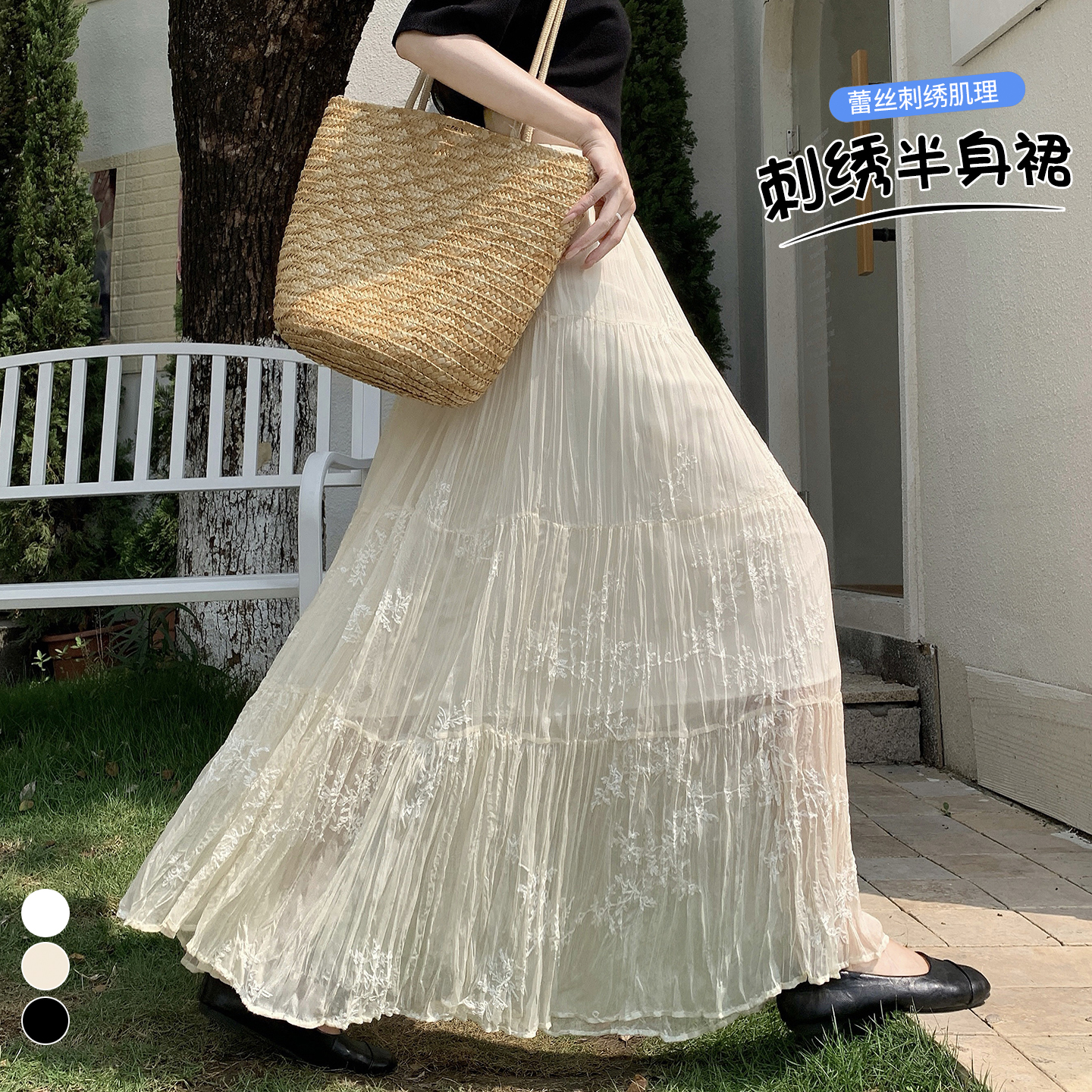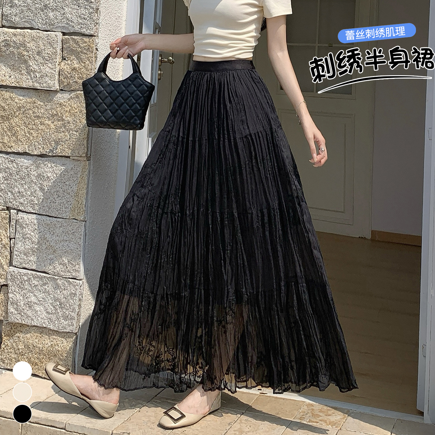 실사 레이스 자수 반신 스커트 여성 2026 여름 하이웨이스트 플리츠 한 마디 중간 길이 스커트 케이크 드레스 빅 플레어 스커트