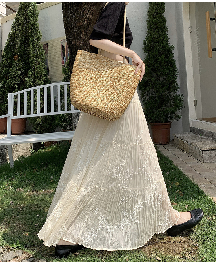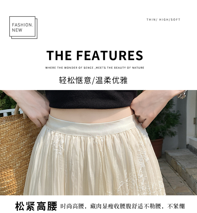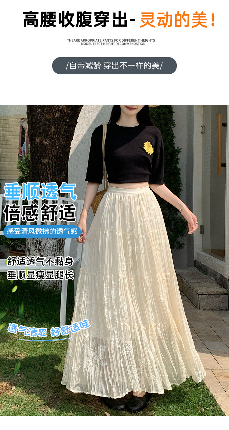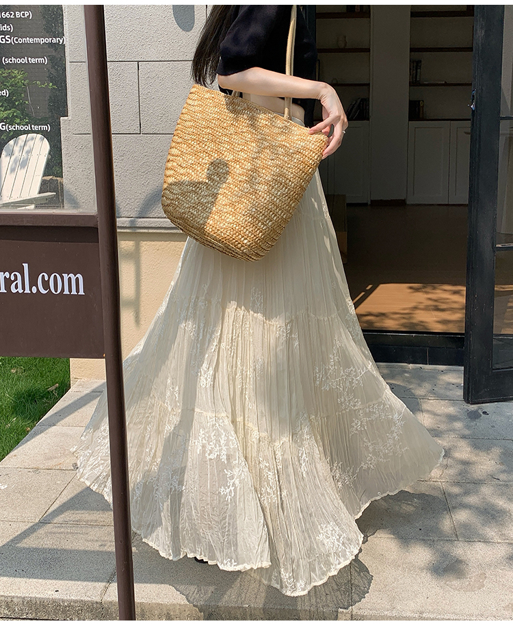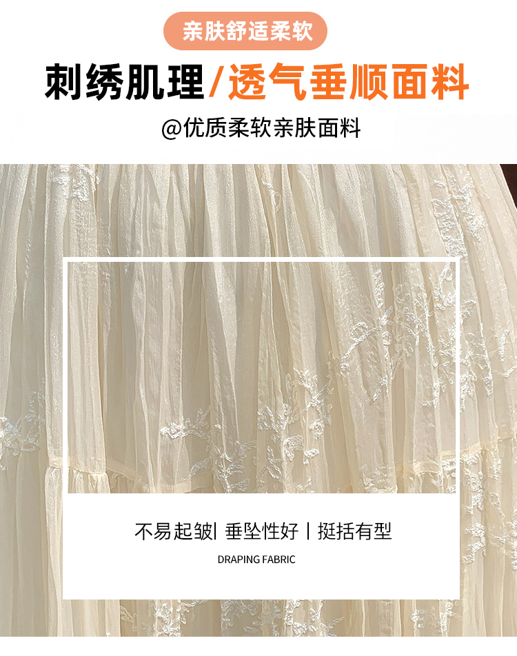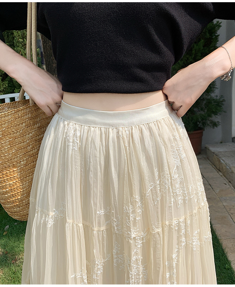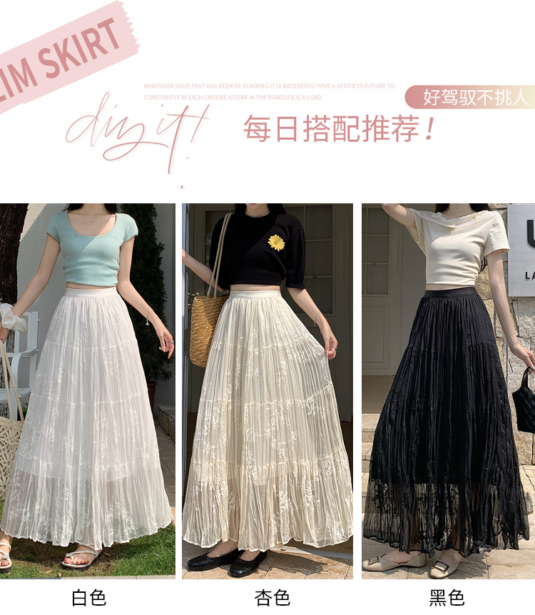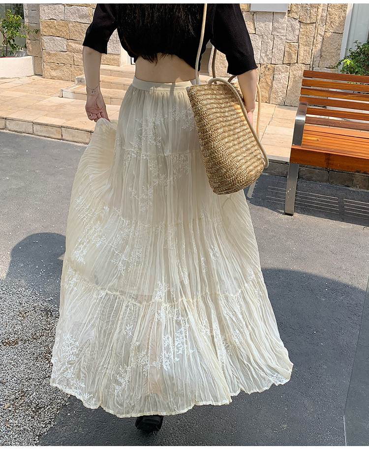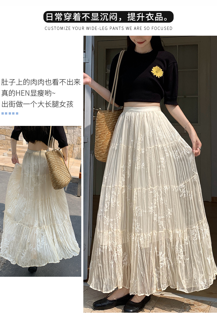 실사 레이스 자수 반신 스커트 여성 2026 여름 하이웨이스트 플리츠 한 마디 중간 길이 스커트 케이크 드레스 빅 플레어 스커트