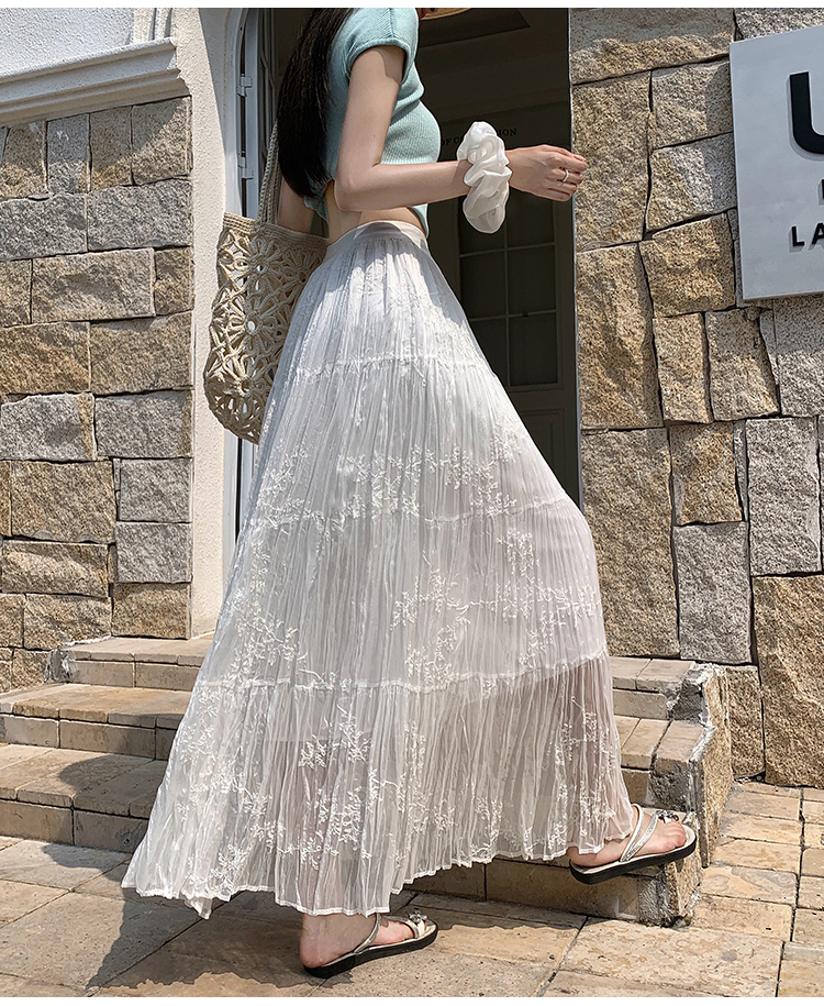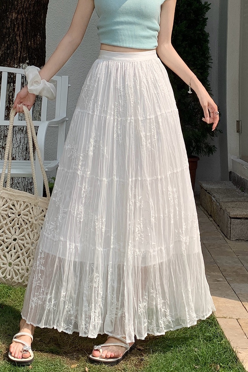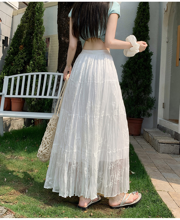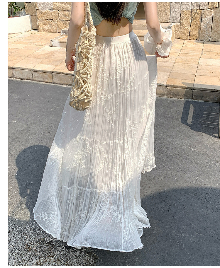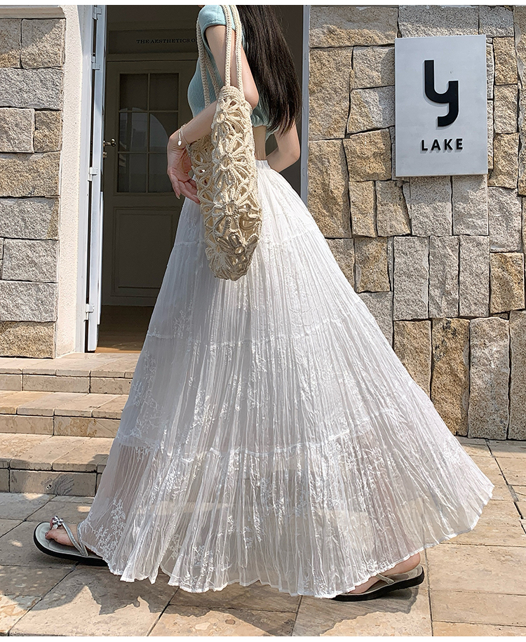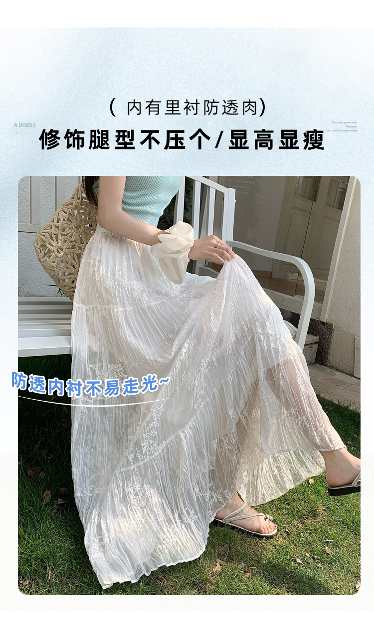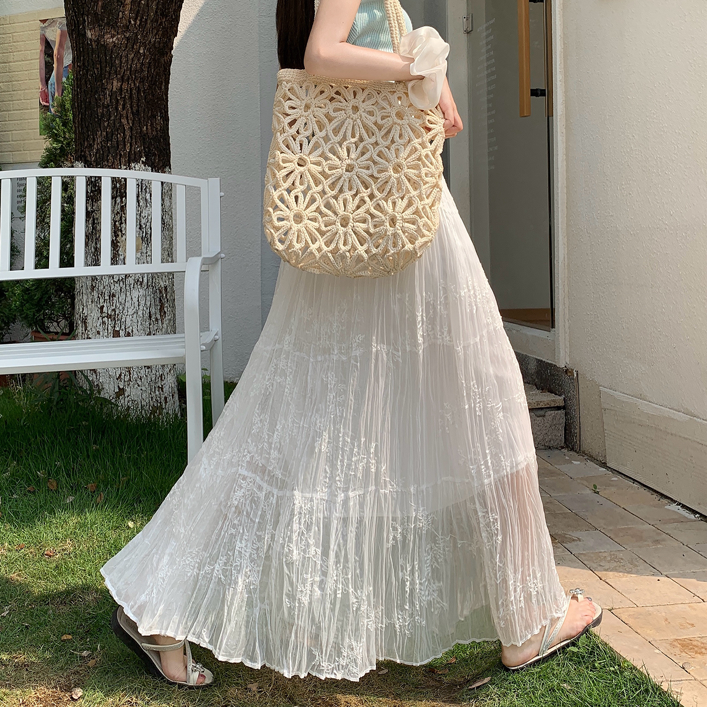 실사 화이트 레이스 조각 케이크 드레스 반신 스커트 여성 여름 부드러운 바람 자수 홀로우 아웃 한 마디 큰 진자 중간 길이 스커트