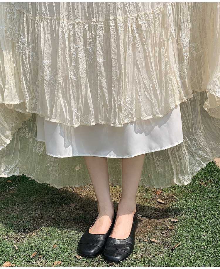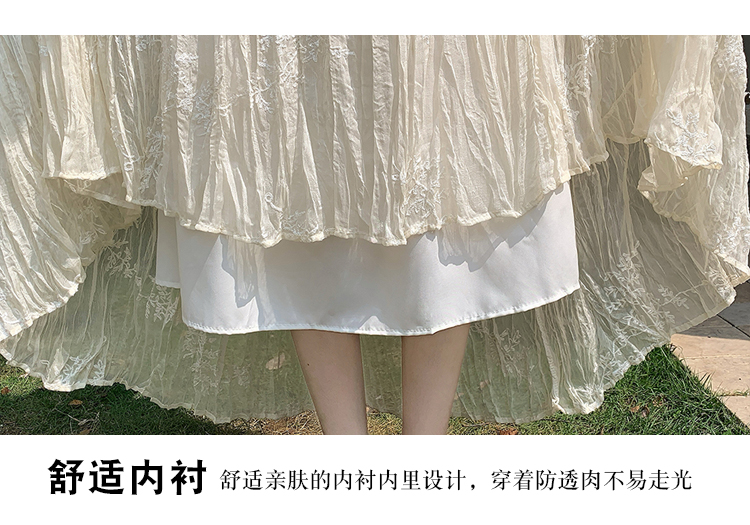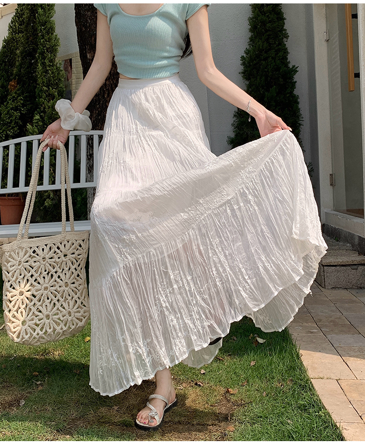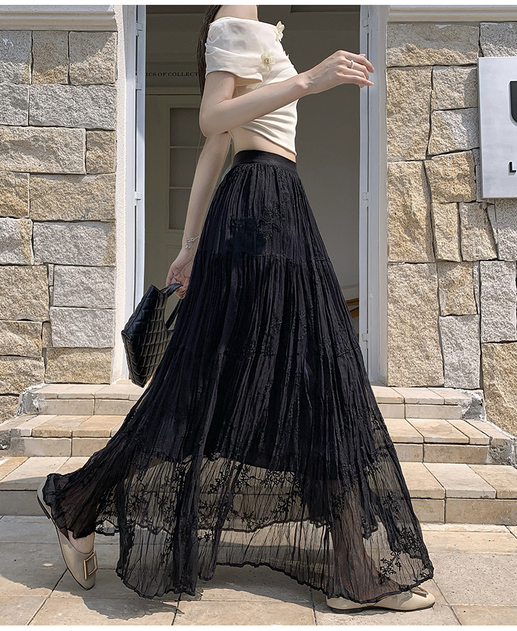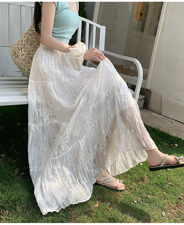 실사 화이트 프릴 불규칙 레이스 조각 쉬폰 반신 스커트 여성 여름 하이웨이스트 루즈핏 한 마디 롱 스커트