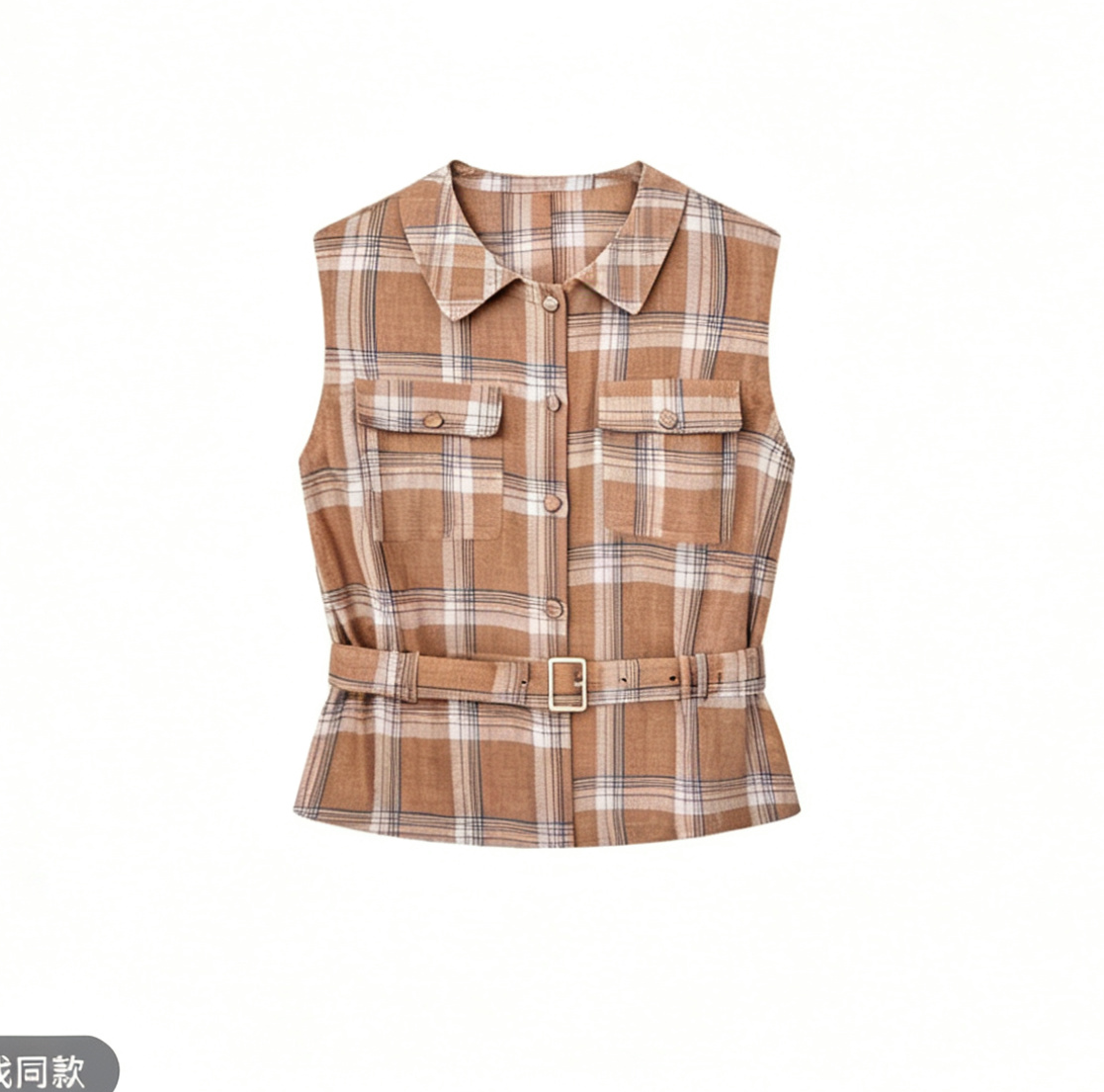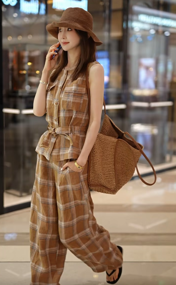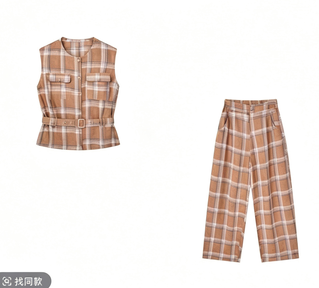 오래된 돈 체크무늬 패션 레트로 주머니 베스트 바지 세트