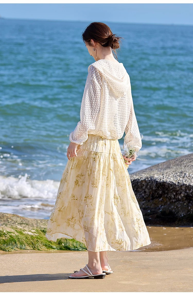 2026 화이트 홀로우 아웃 후드 여성 코트 봄 여름 새로운 느긋한 루즈핏 품격 다용도 얇은 스타일 맨위