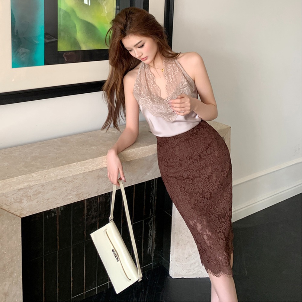 실사 2026 봄 여름 새로운 디자인 몸매 가꾸기 슬림해 보이는 하이웨이스트 타이트 스커트 여성 레이스 치마 중간 길이 스커트 반신 치마