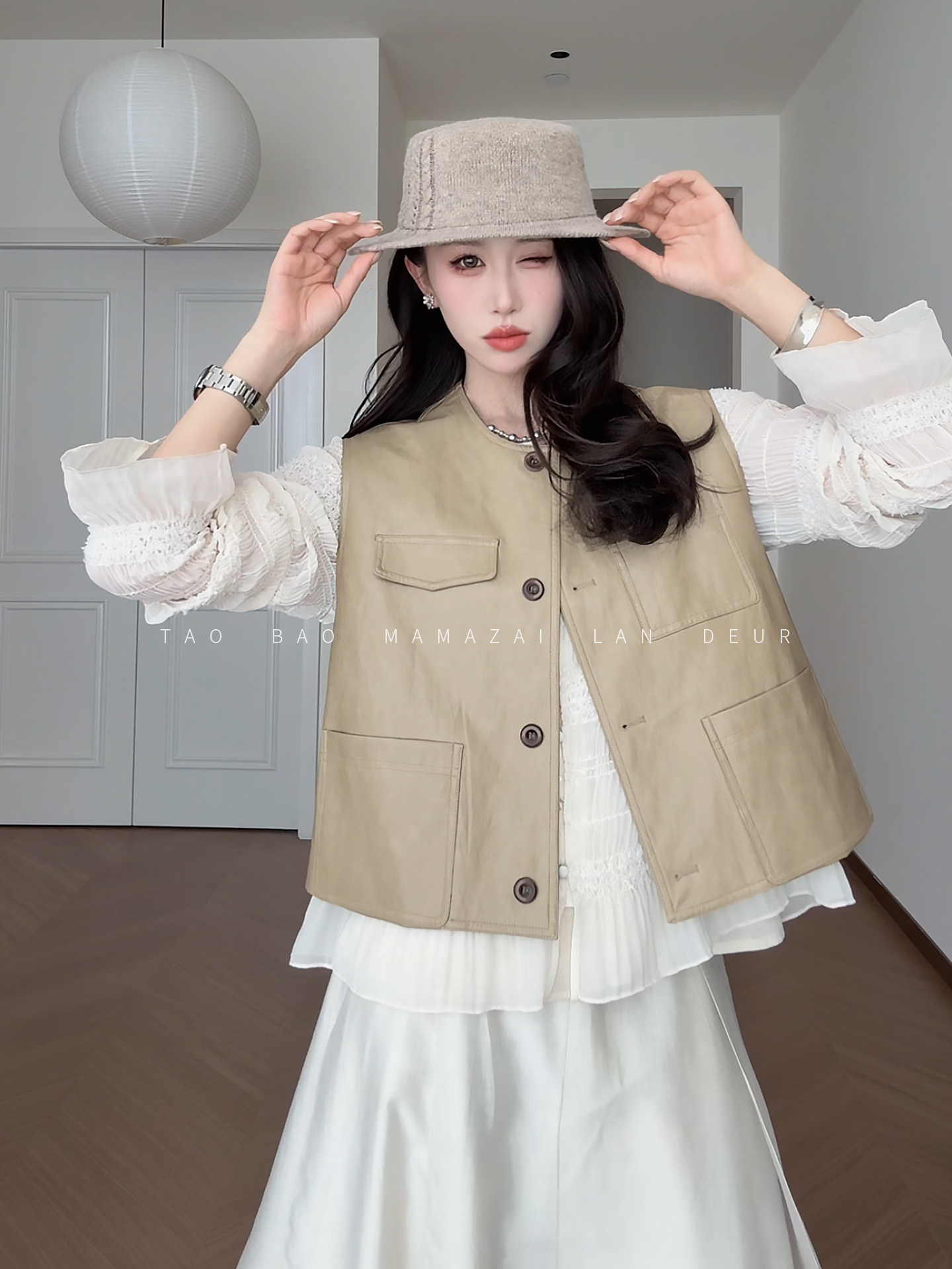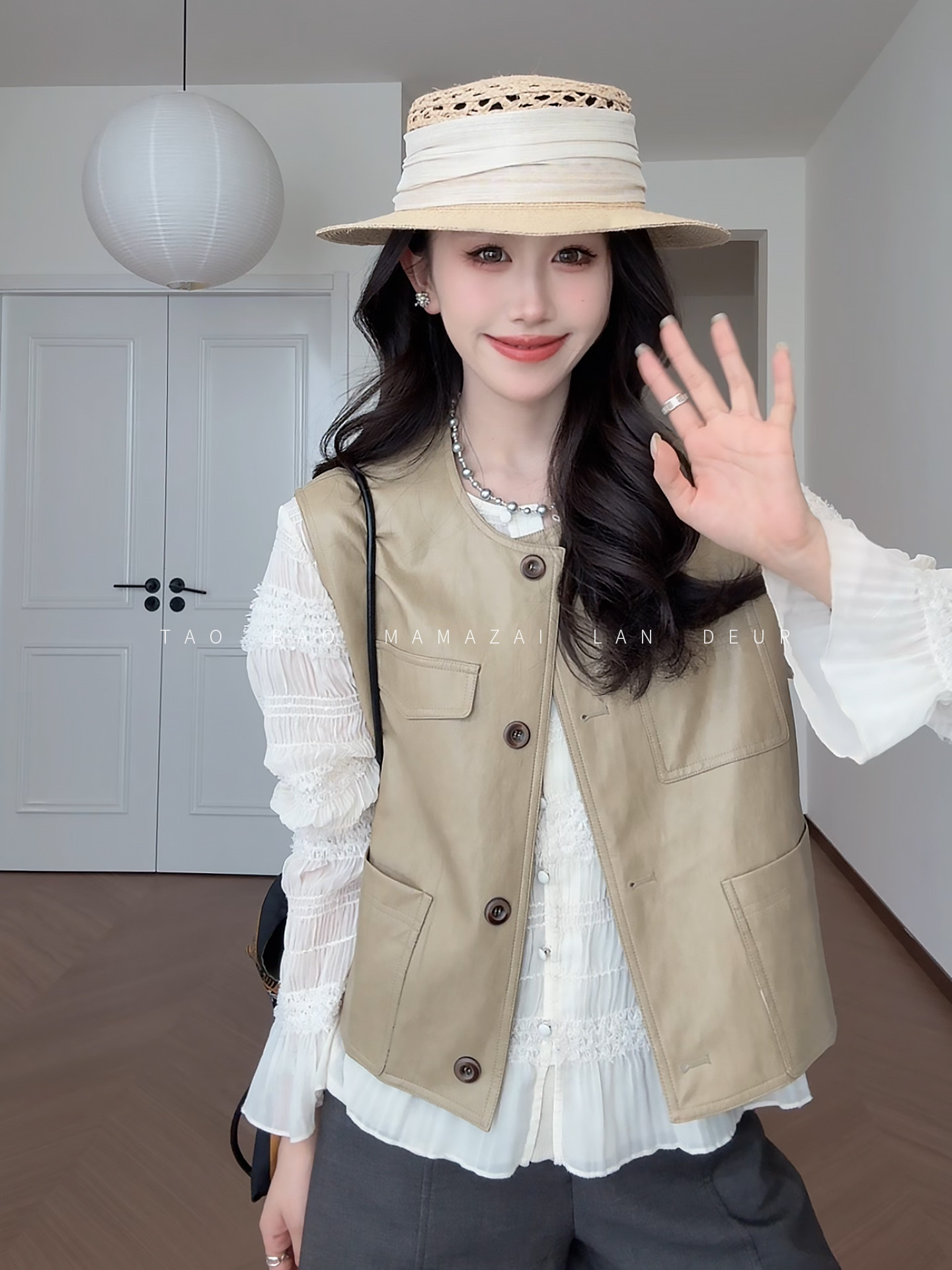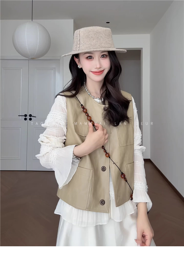새로운 중식 빛 국풍 품격 착용 가져 가라. 민소매 자카드 베스트