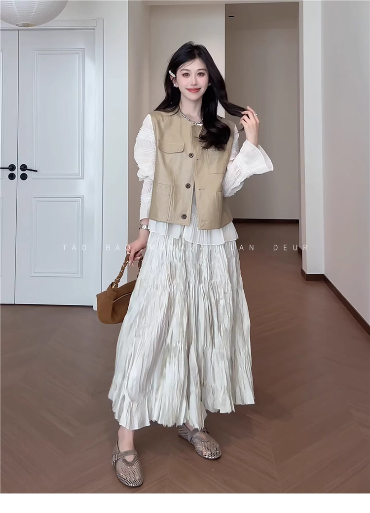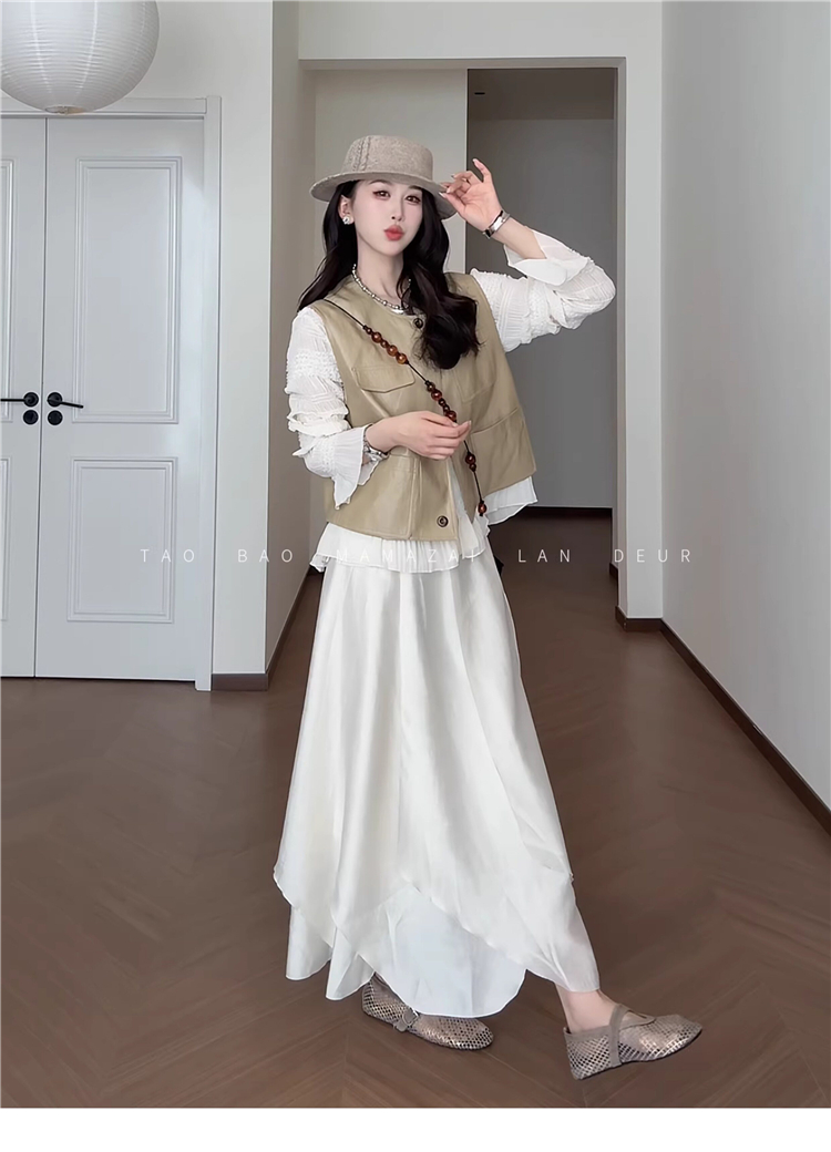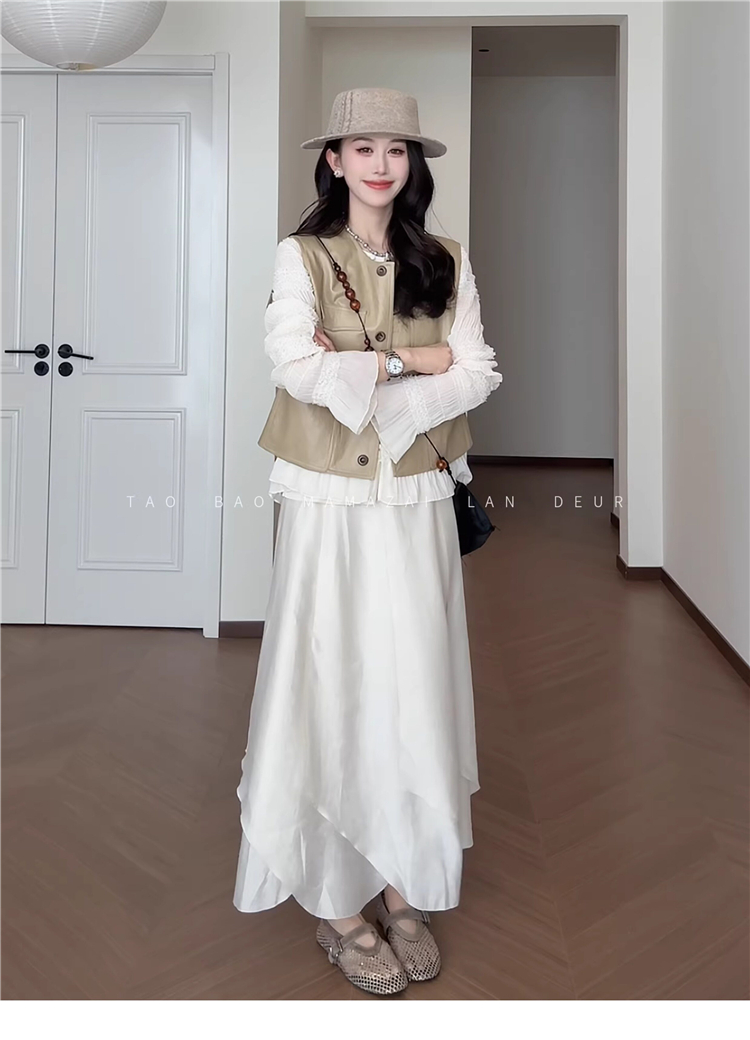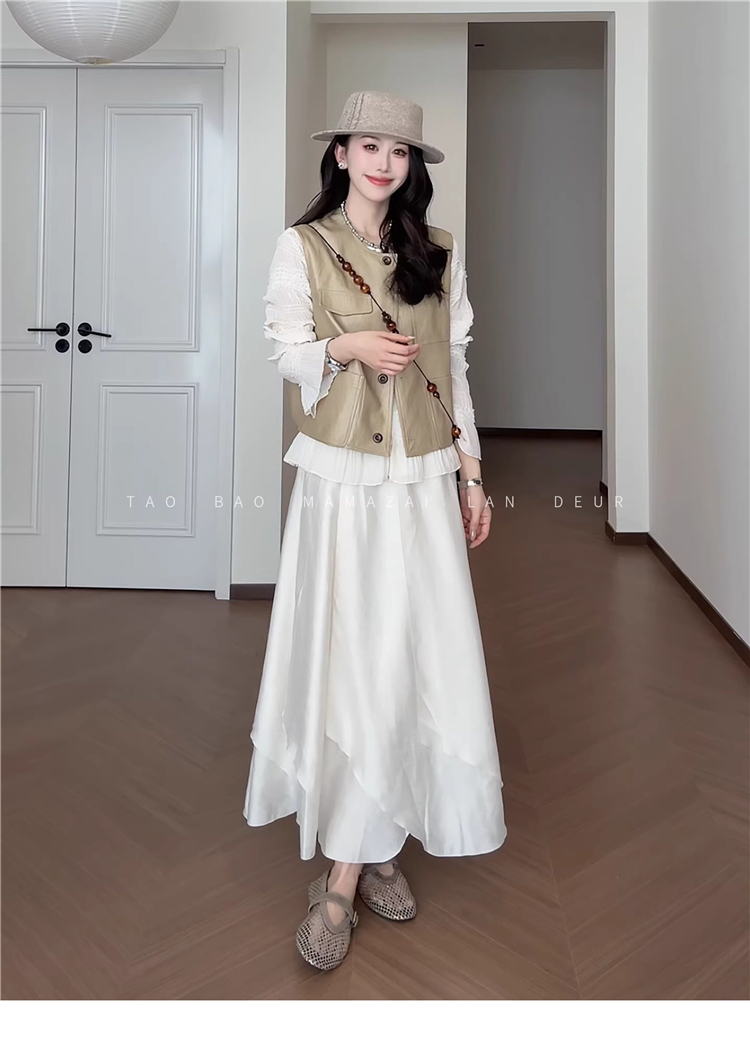 빅 사이즈 여성 의류 지방 mm 작은 대중 디자인 센스 레이스 질감 곡물 조끼 여성 드레스 여름 품격 슬림해 보이는 롱 스커트