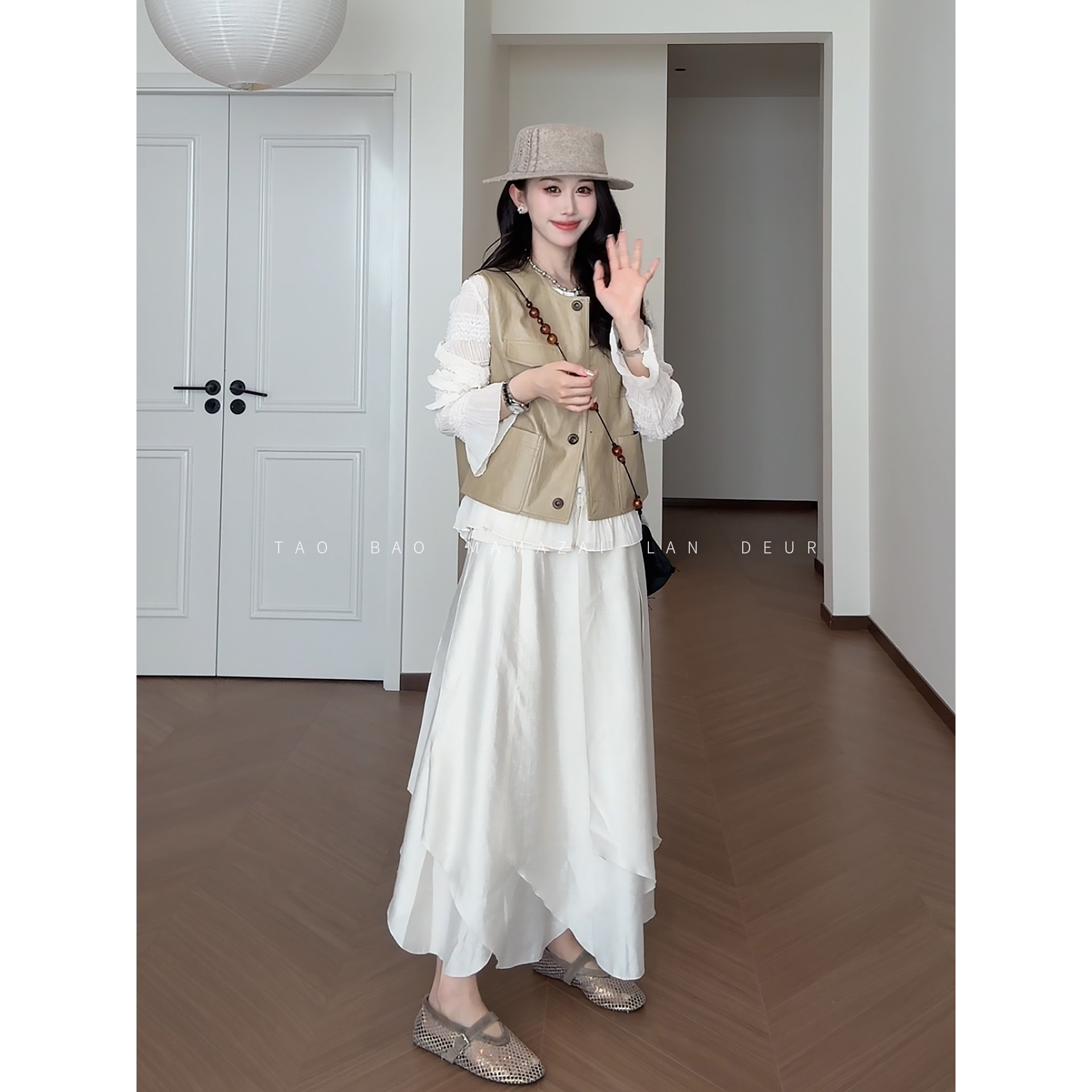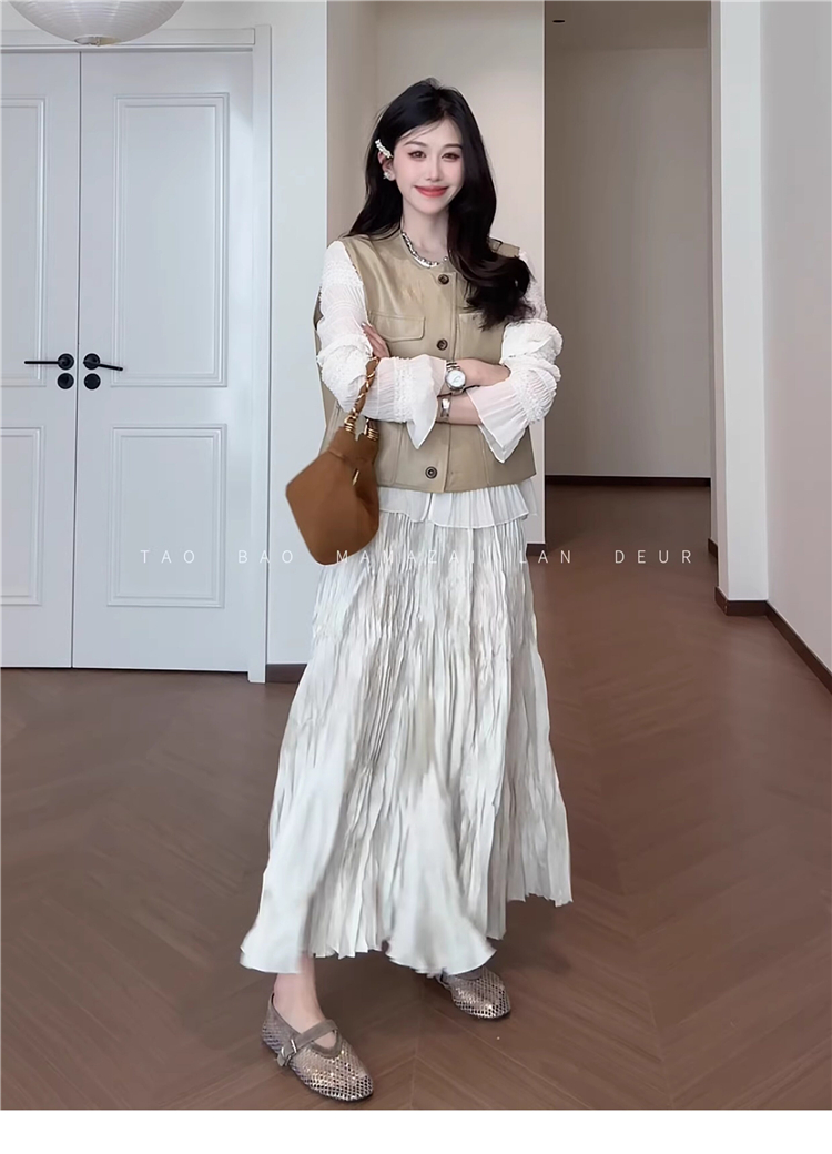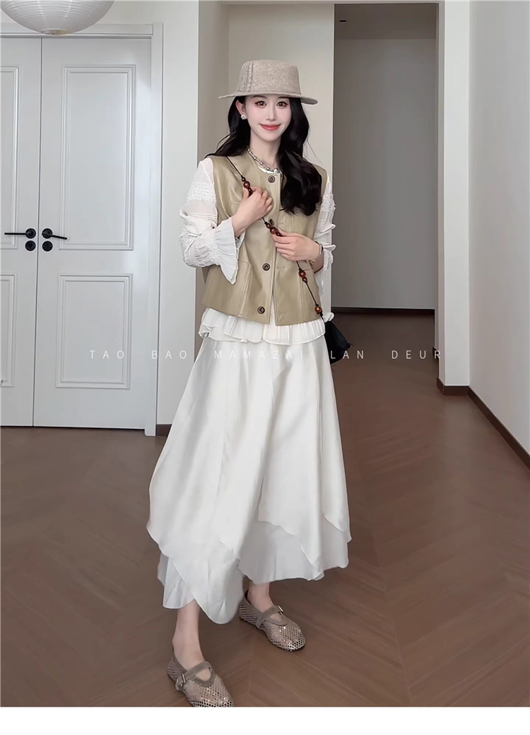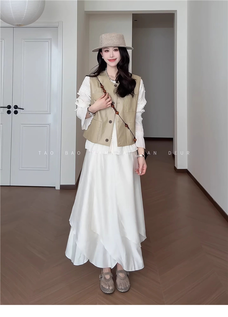 빅 사이즈 여성 의류 지방 mm 작은 대중 디자인 센스 레이스 질감 곡물 조끼 여성 드레스 여름 품격 슬림해 보이는 롱 스커트