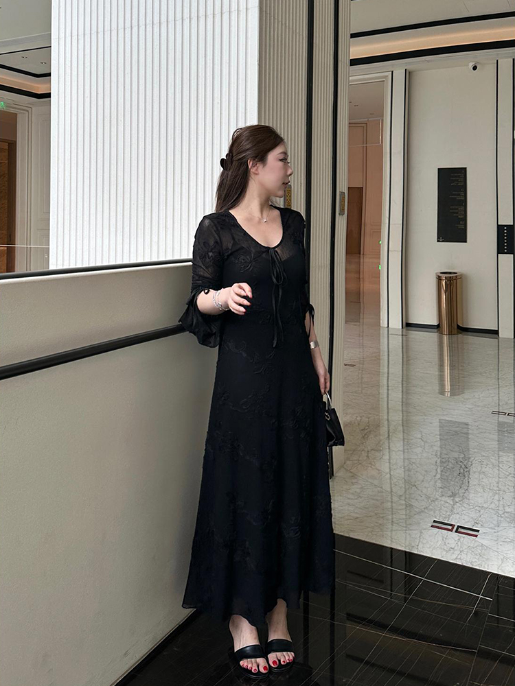 빅 사이즈 여성 의류 지방 mm 프랑스식 V넥 프릴 자수 슬립 드레스 2026 여름 슬림해 보이는 품격 롱 스커트