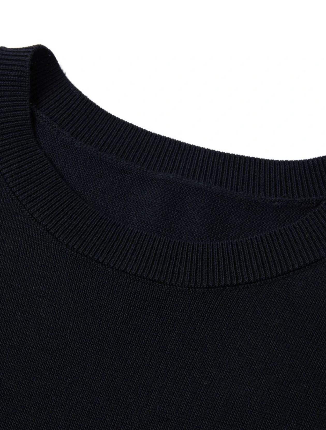 실사 파란색 광장 칼라 니트 긍정적 인 어깨 반팔 티셔츠 여름 새로운 작은 대중 디자인 센스 몸매 가꾸기 슬림해 보이는 맨위 chic