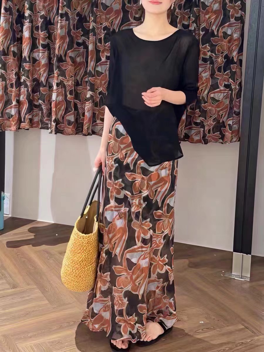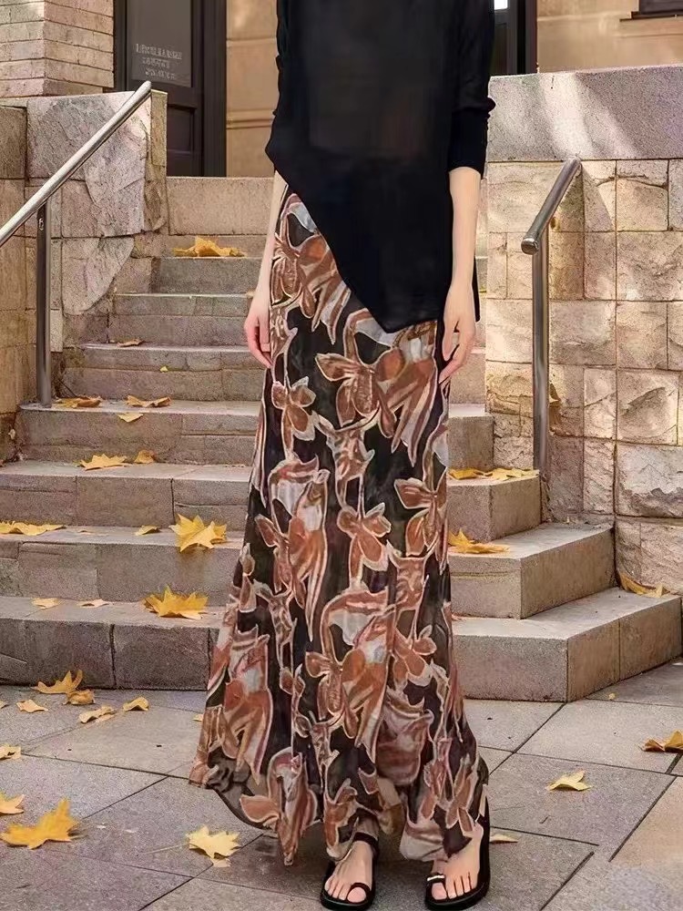 고급 센스 품격 빛 요리 한 연령 감소 프린트 반신 스커트 여성 2026 봄 새로운 프랑스식 하이웨이스트 슬림해 보이는 인어 꼬리 스커트
