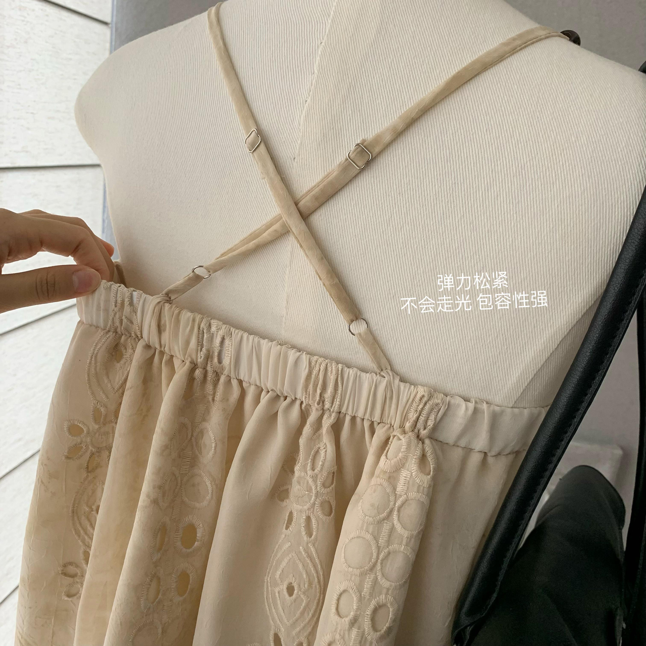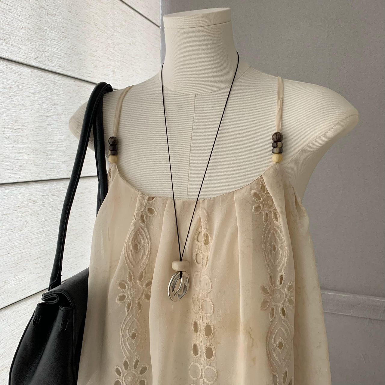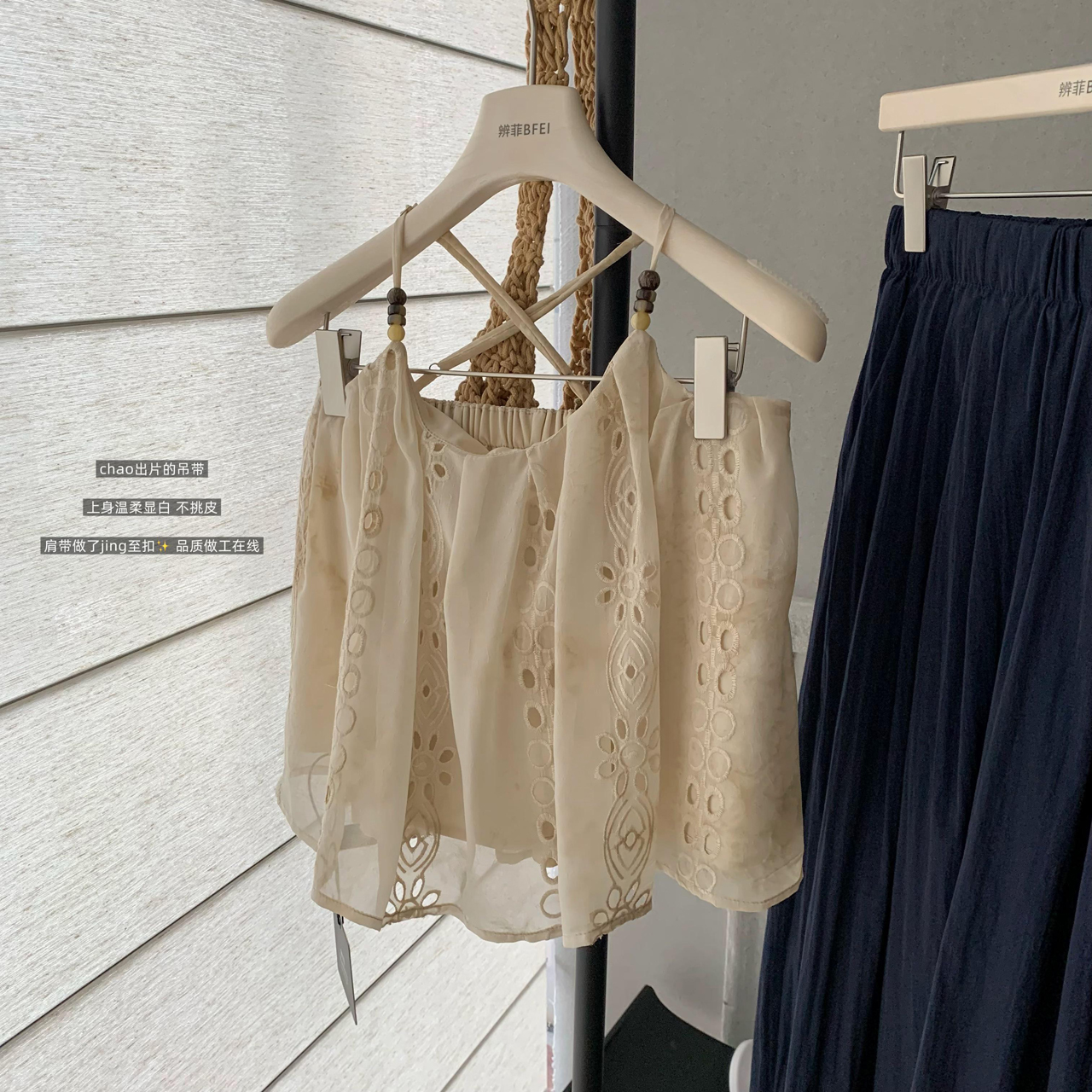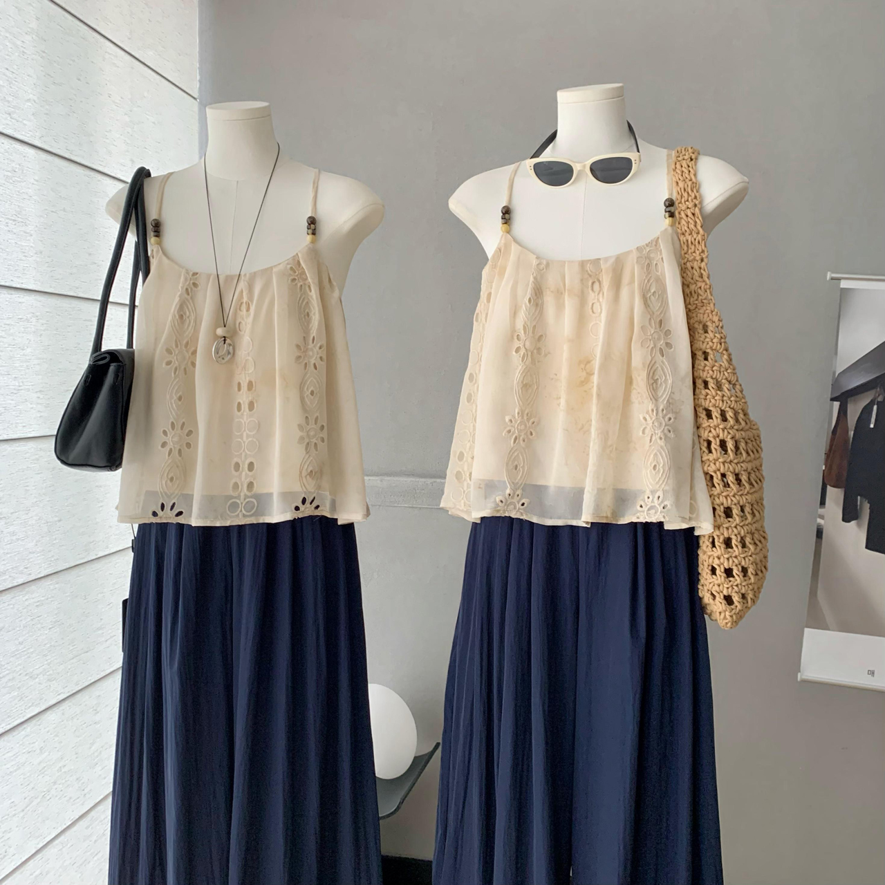 cuitcuit 산란 수평 비스듬한 휴가 바람 홀로우 아웃 자수 비즈 캐미솔 부드러운 민소매 맨위 여름