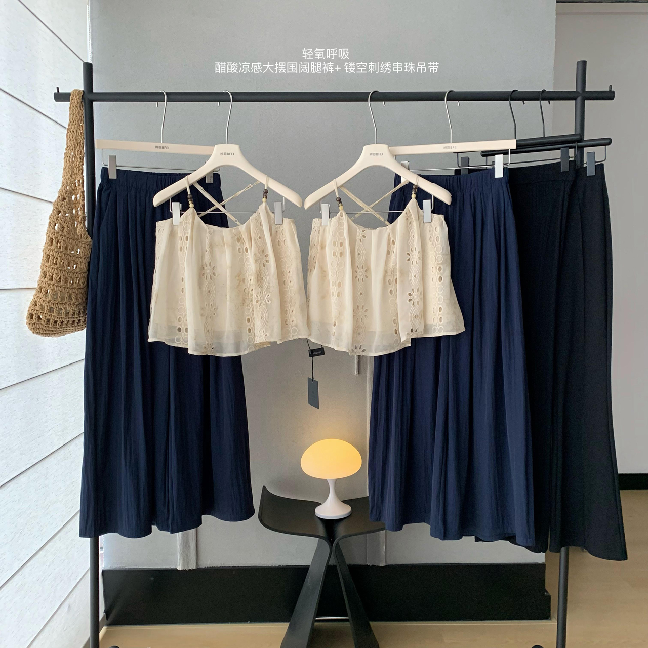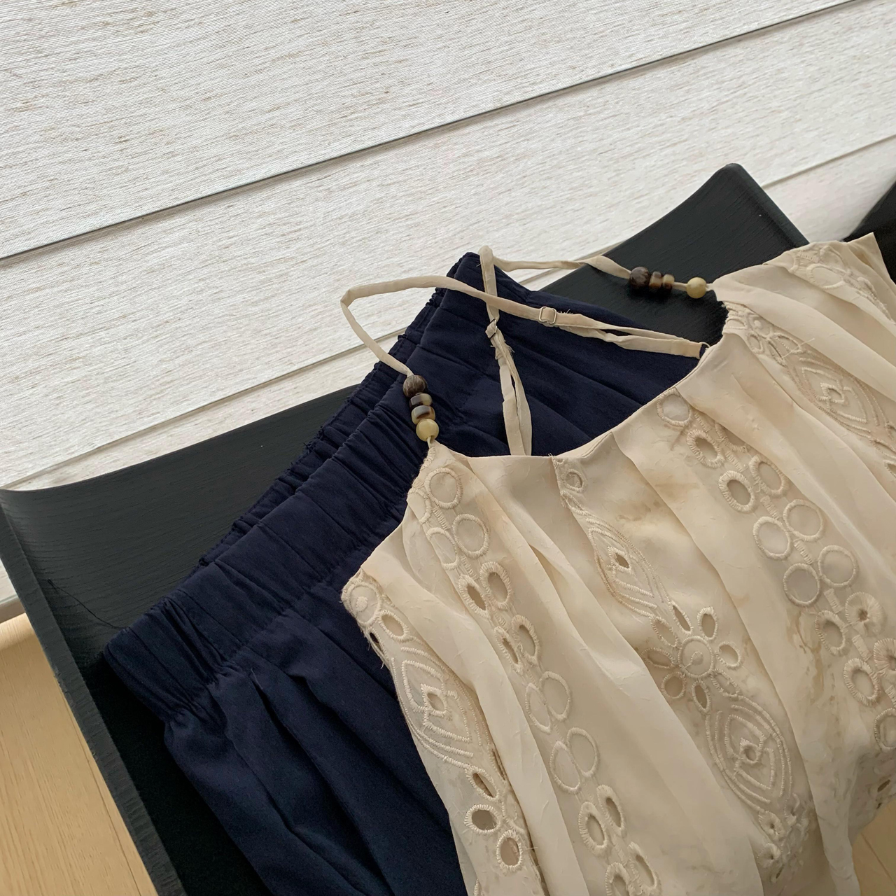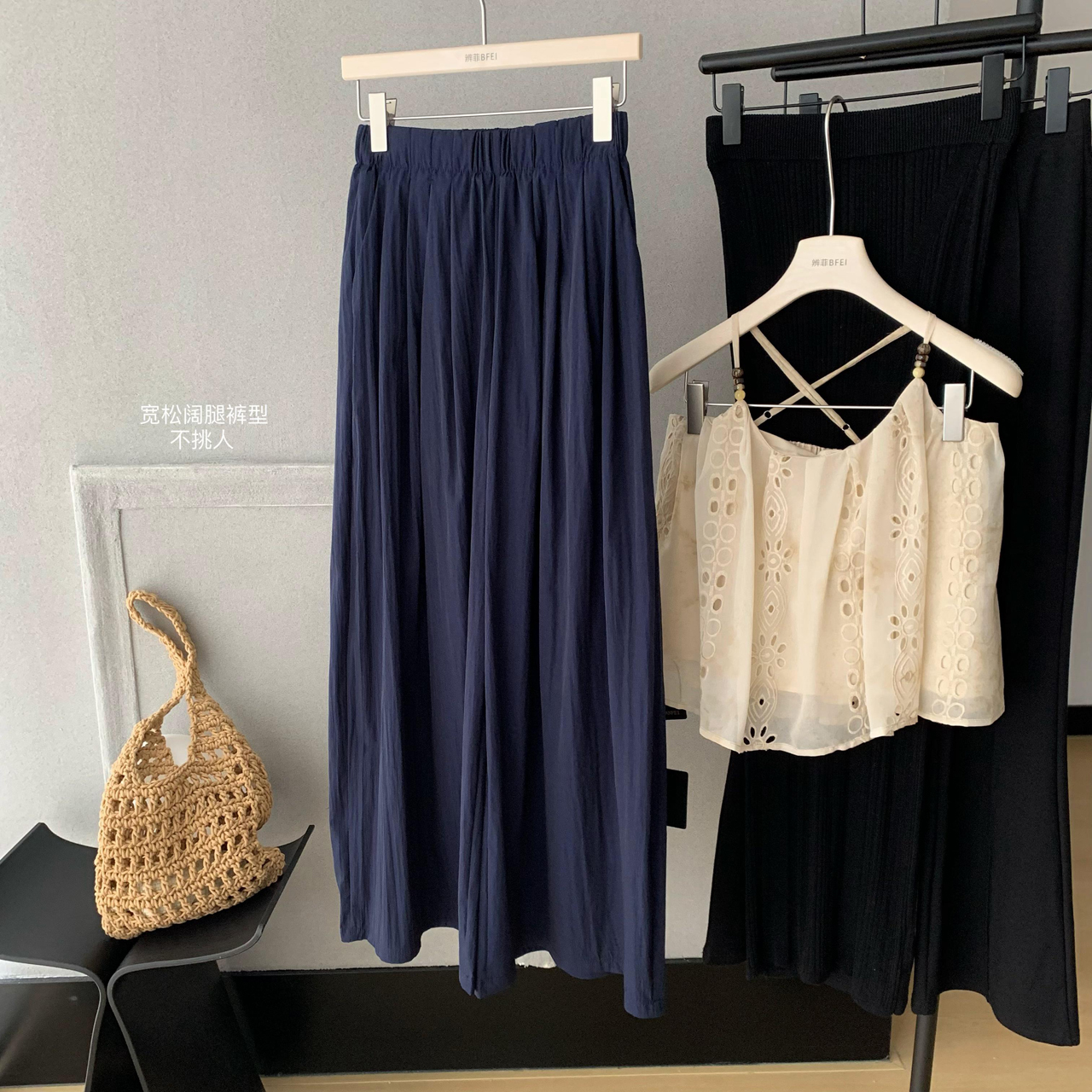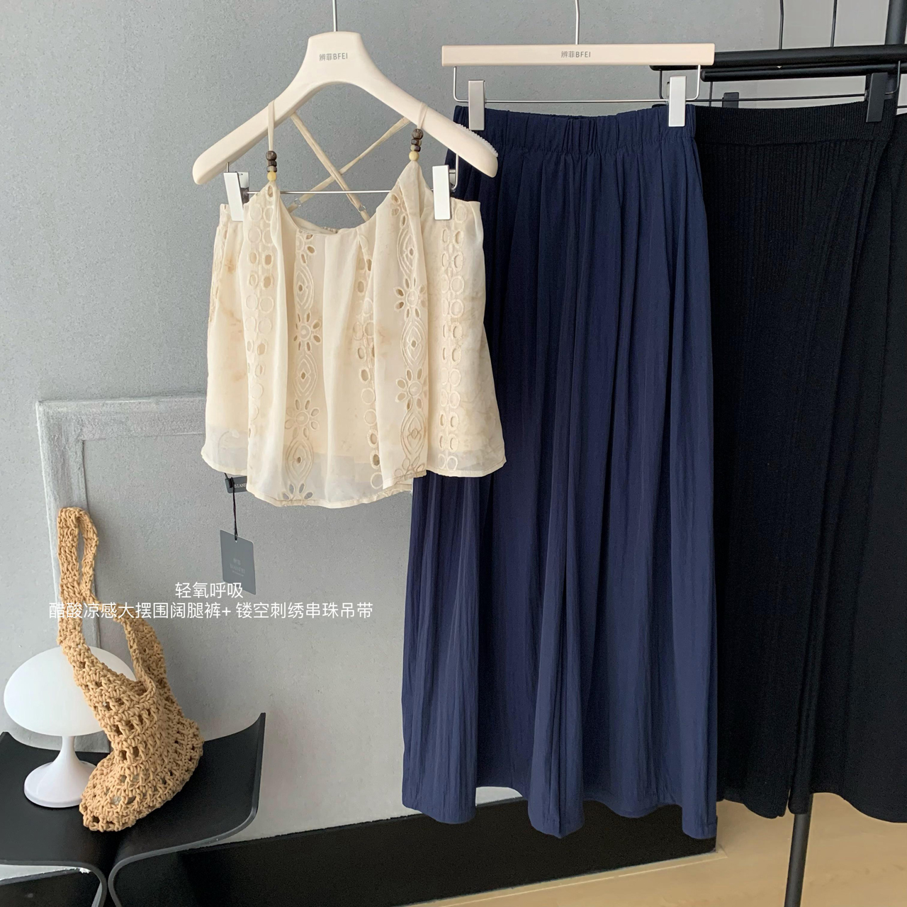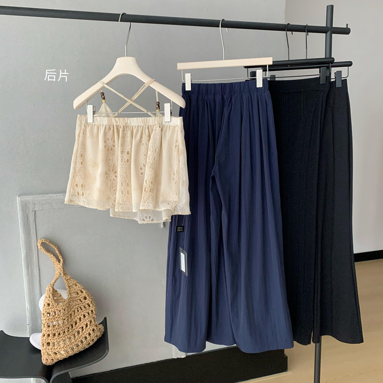 heygirl 블랙 형제 니켈 맛 outfit 프릴 민소매 셔츠 조끼 베스트 맨위 와이드 레그 팬츠 세트