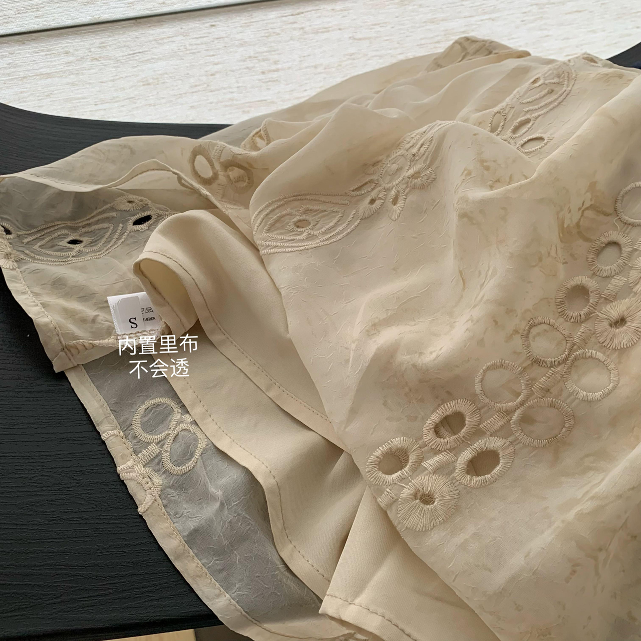 실사 반팔 슬림해 보이는 홀로우 아웃 물 용해 레이스 포지셔닝 중간 길이 드레스