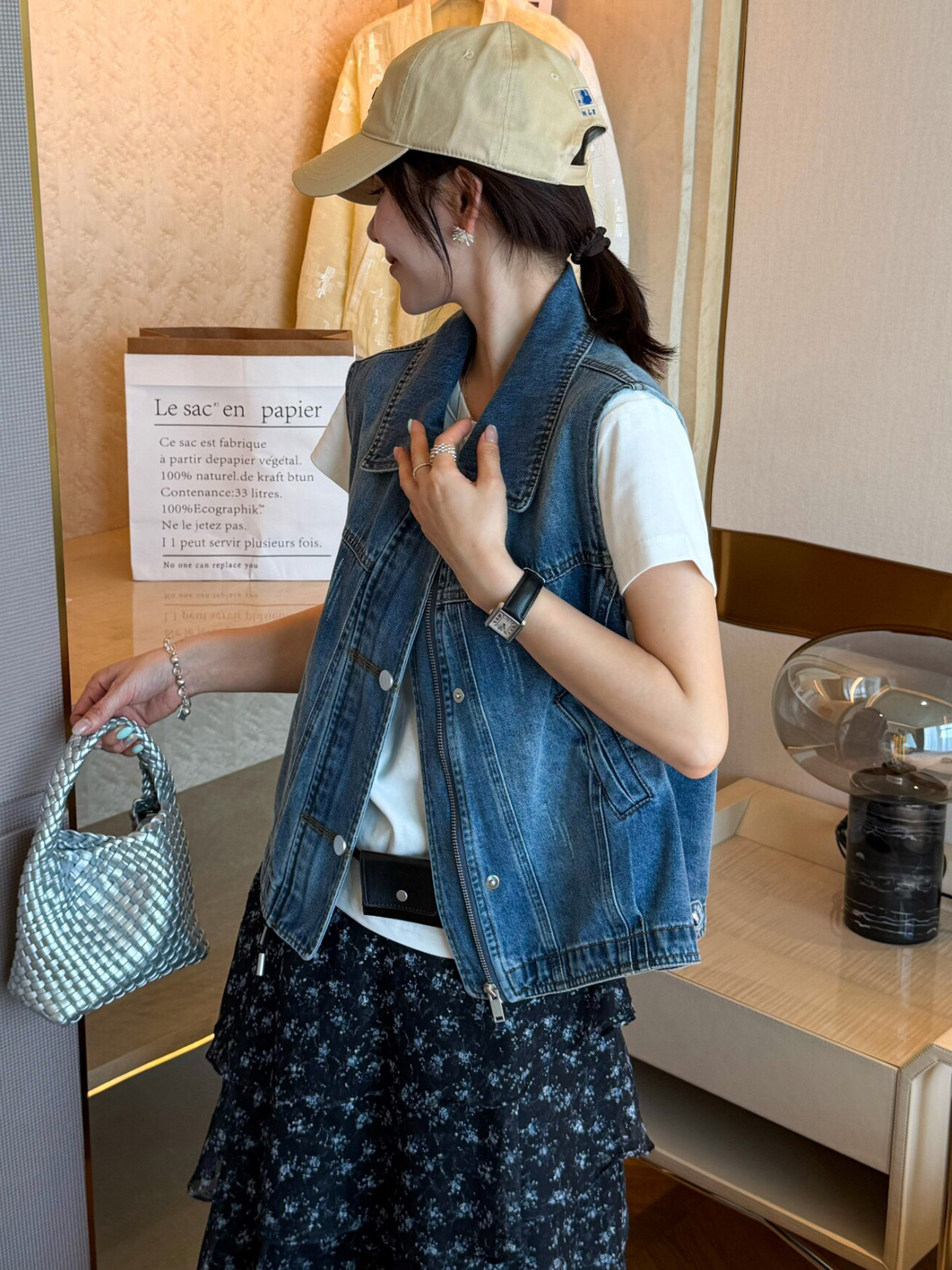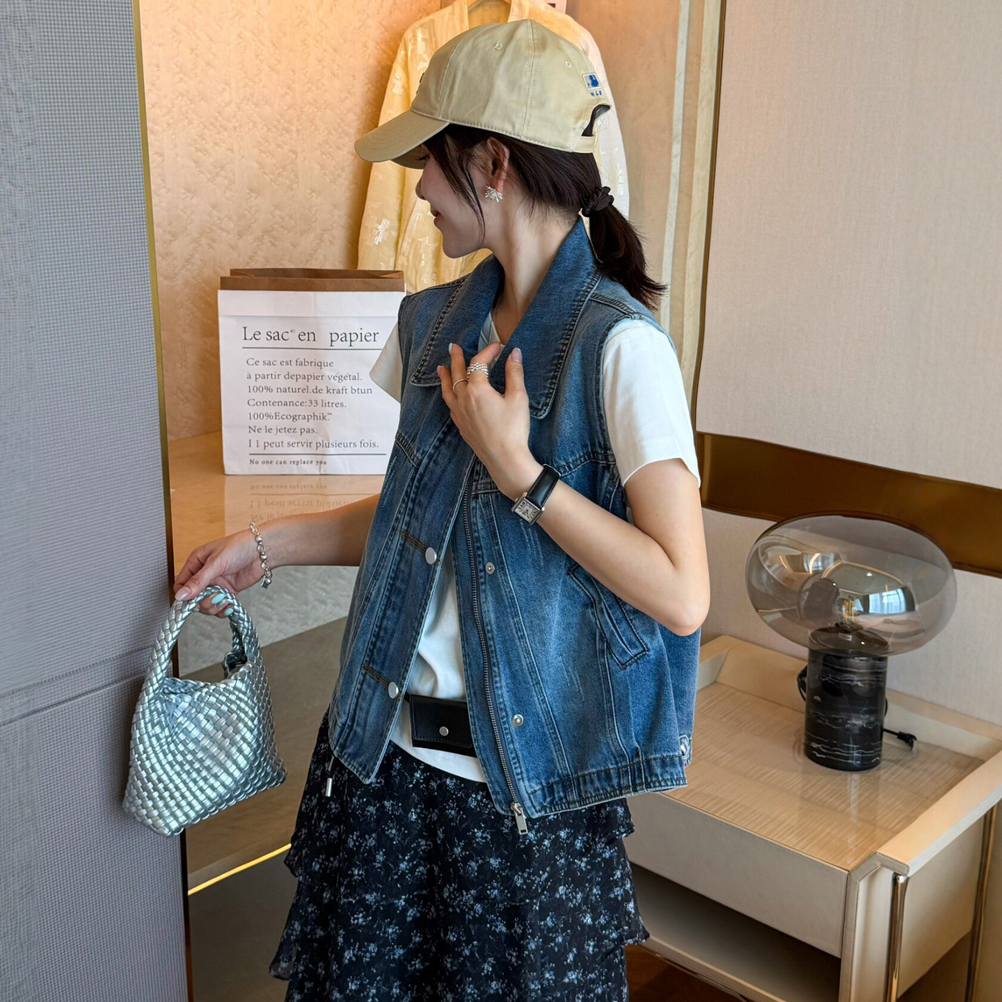 2026 새로운 레트로 캐주얼 세련된 외국 가스 스택 착용 외출용 작은 스탠드 칼라 데님 베스트 조끼 여성 코트 봄 드레스