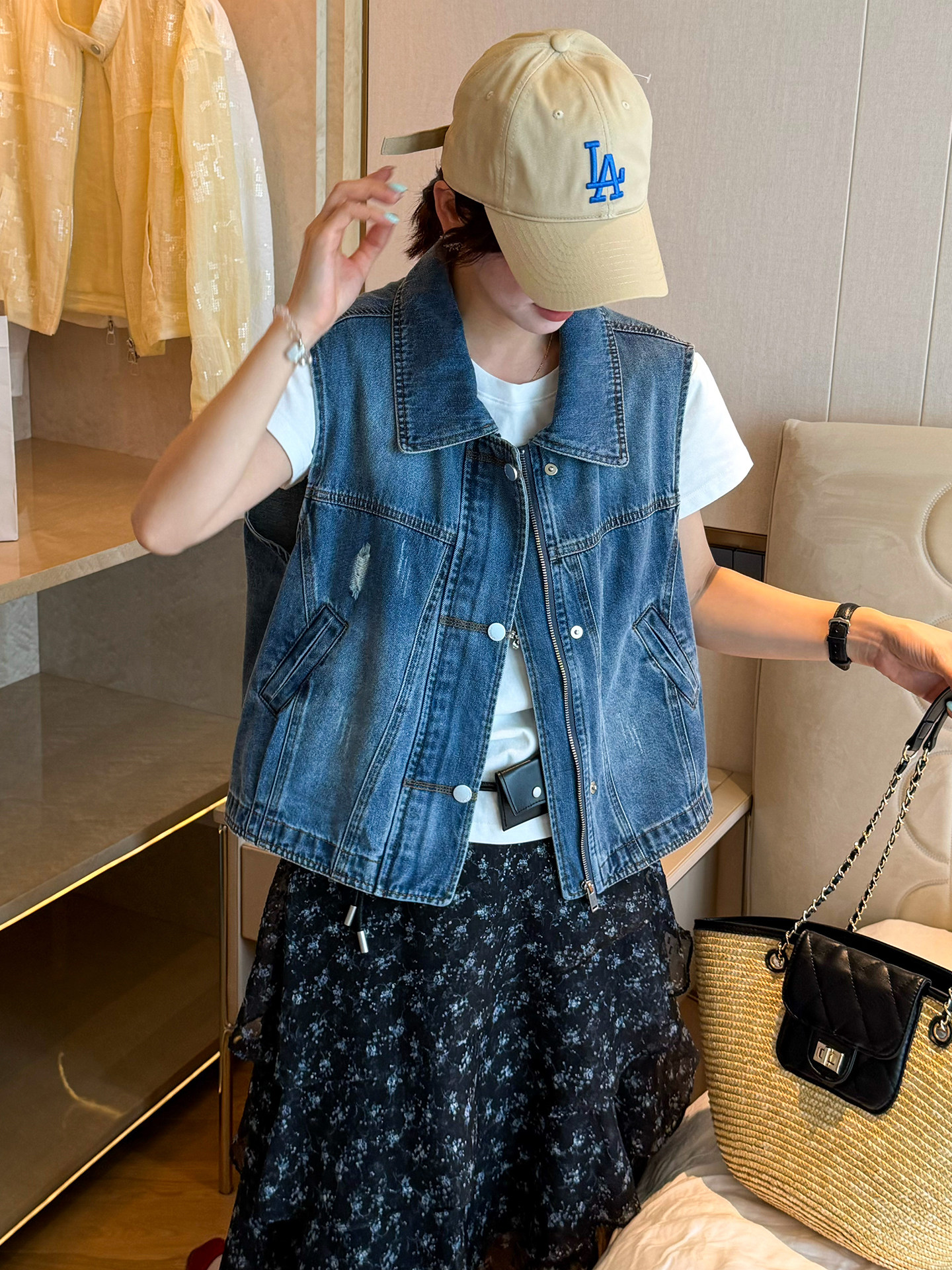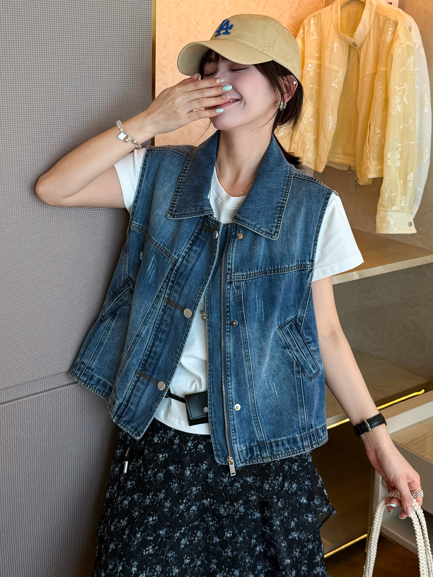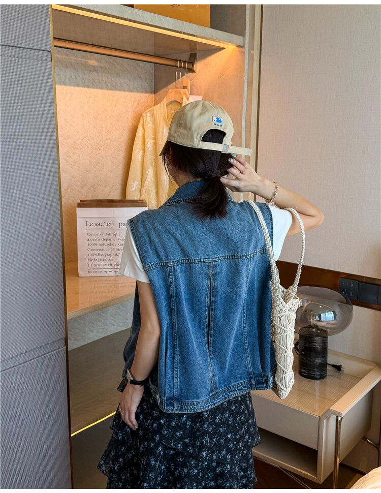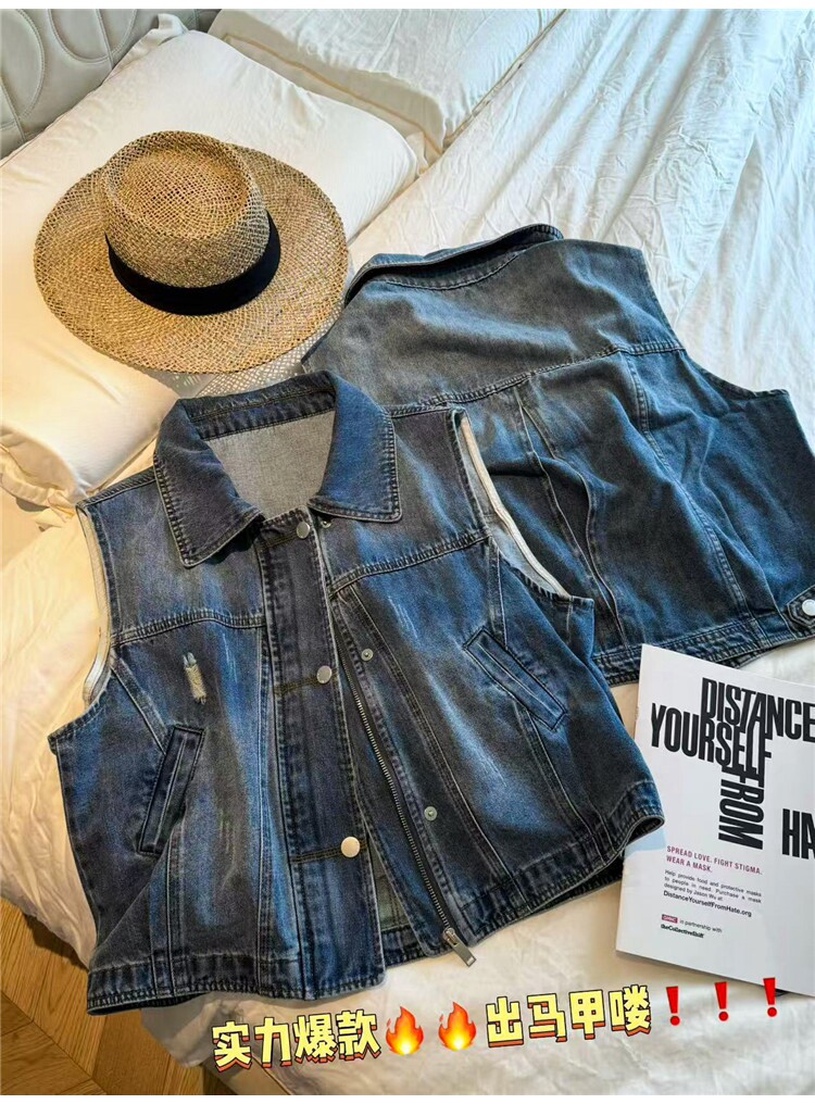 2026 봄 새로운 한국 스타일 루즈핏 슬림해 보이는 다용도 라운드 넥 민소매 데님 베스트 여성 레저 다용도 맨위