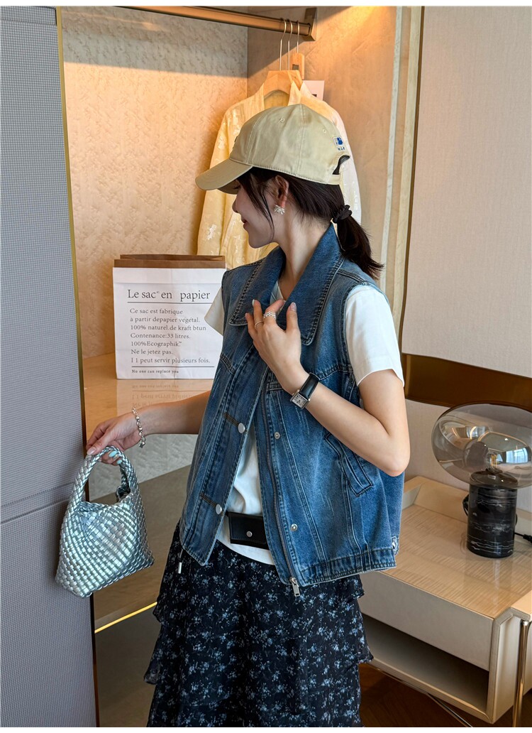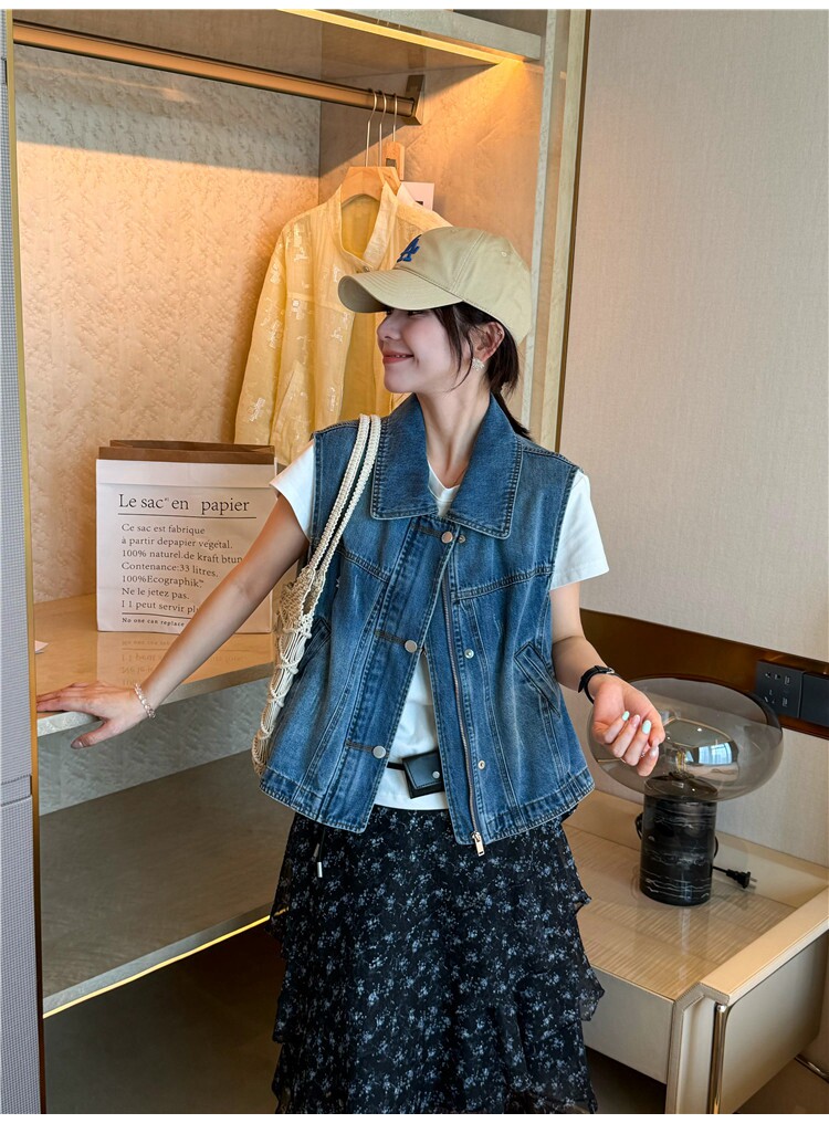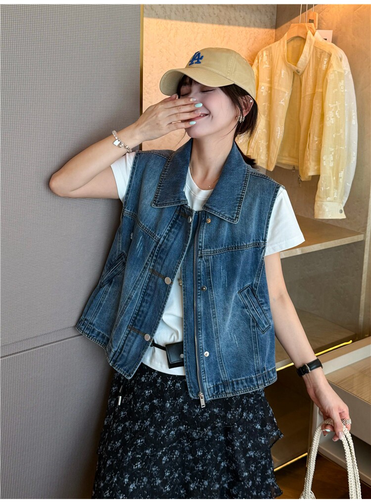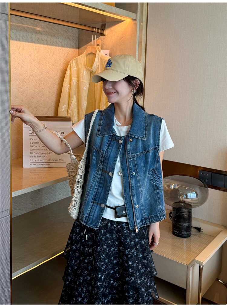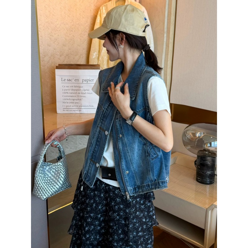 레트로 폴로 칼라 지퍼 데님 베스트 여성 코트 유럽 역 2026 봄 드레스 새로운 유럽 상품 여성 의류 카우보이 의류 트렌디
