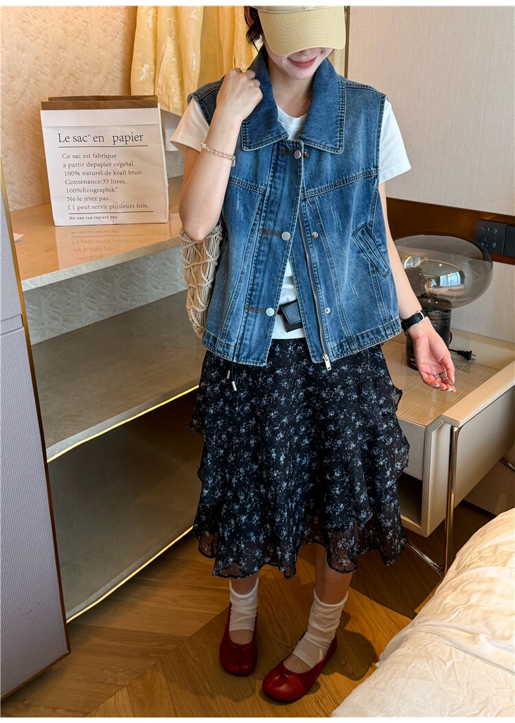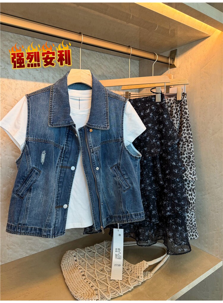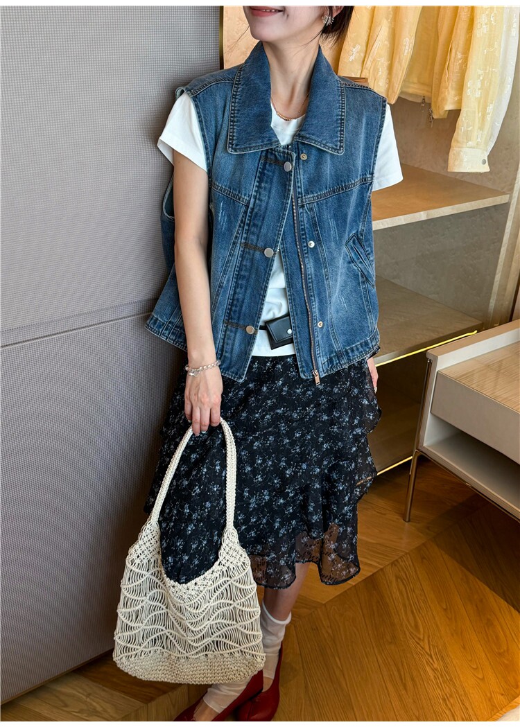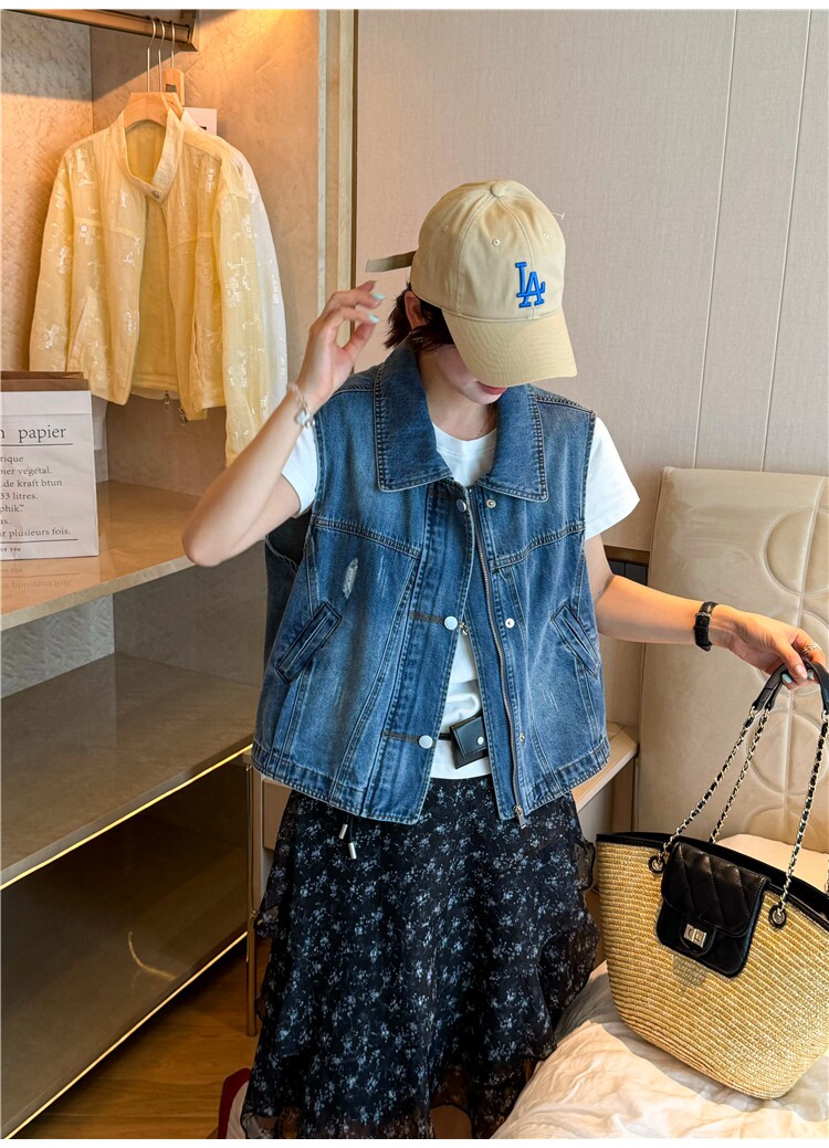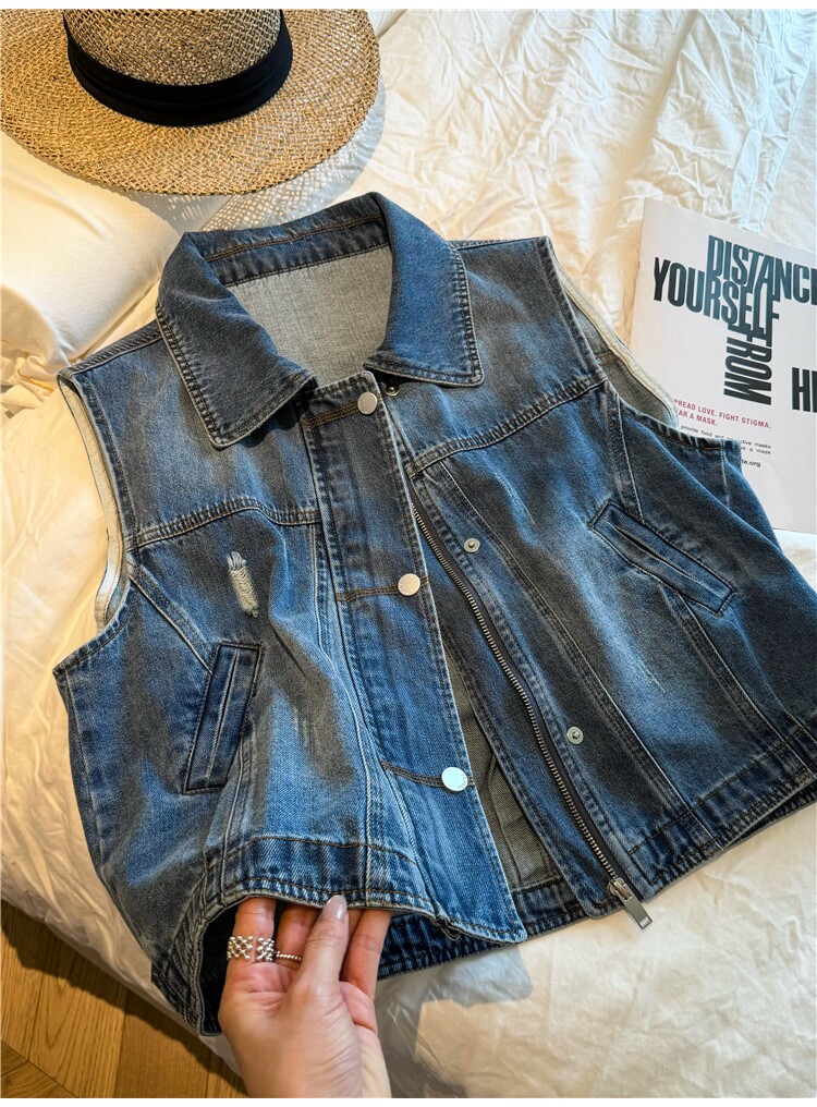 레트로 폴로 칼라 지퍼 데님 베스트 여성 코트 유럽 역 2026 봄 드레스 새로운 유럽 상품 여성 의류 카우보이 의류 트렌디