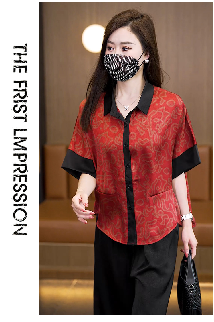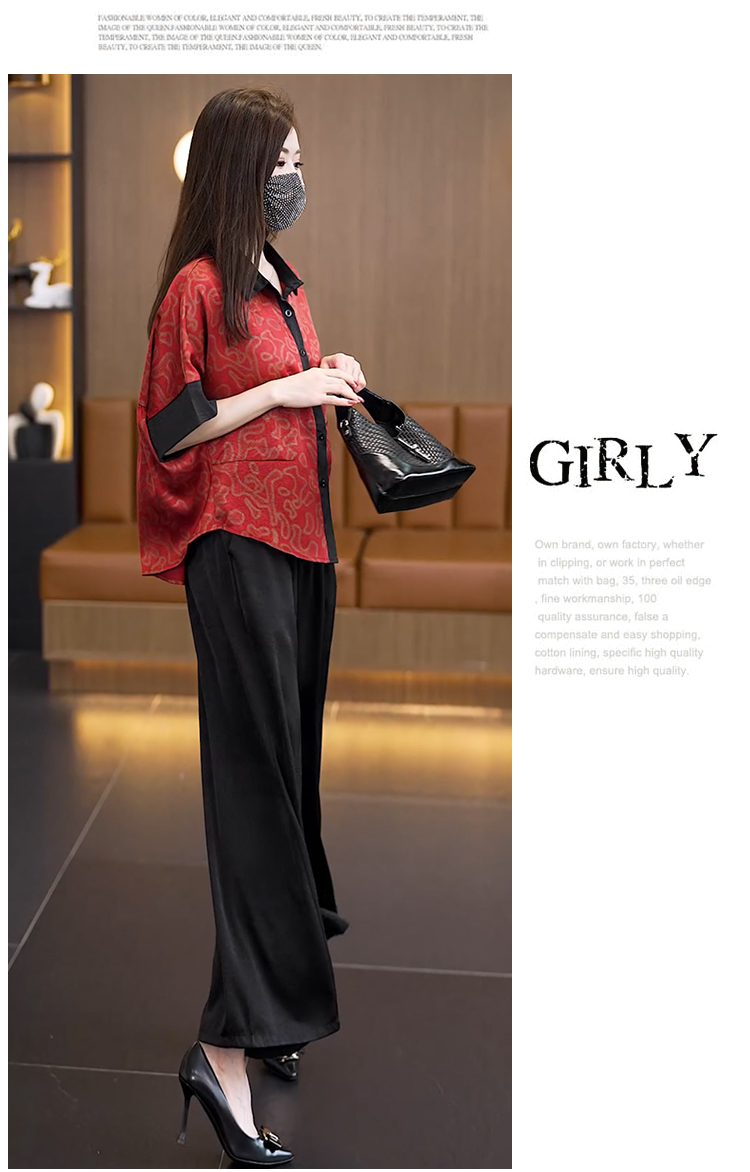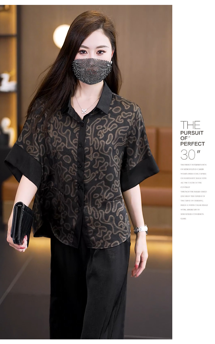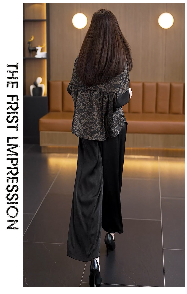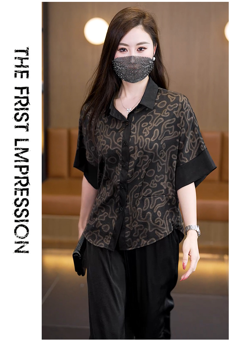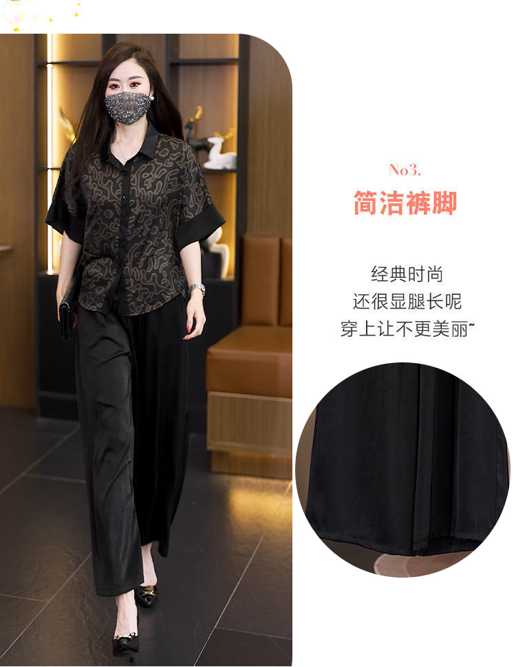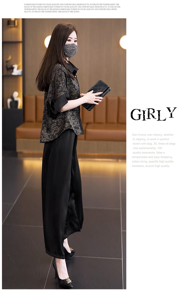 중년 엄마 여름 드레스 패션 세트 루즈핏 와이드 레그 팬츠 외국 가스 빅 사이즈 여성 의류 아세트산 공단 고급 투피스 세트