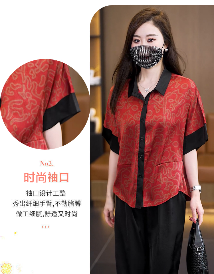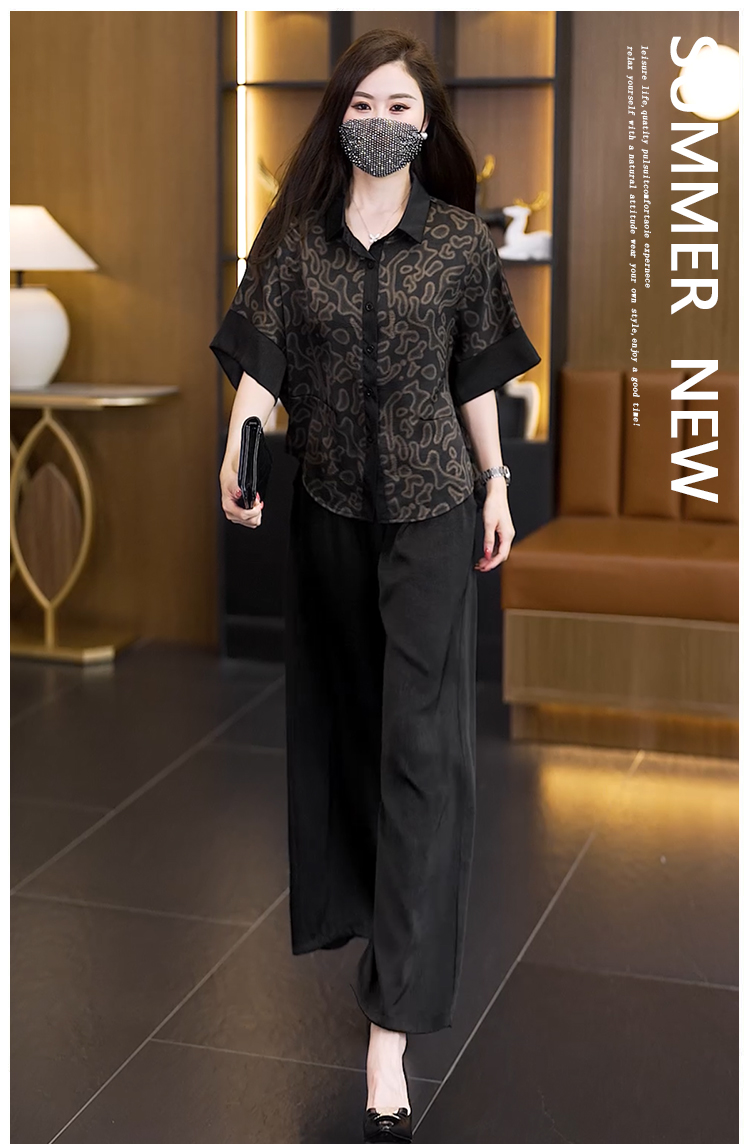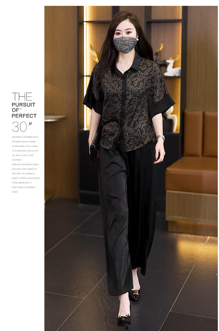 여름 새로운 어머니 드레스 중년 여성 투피스 세트 패션 다용도 반팔 와이드 레그 팬츠 슬림해 보이는 세트