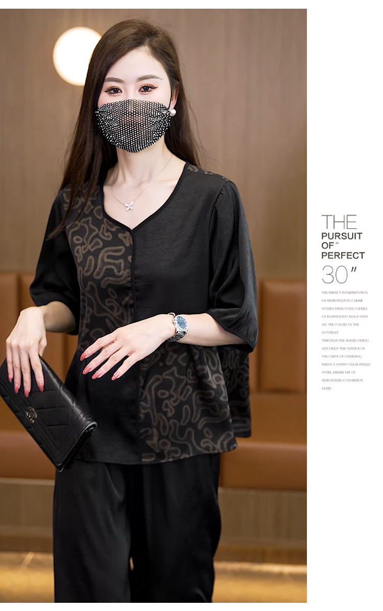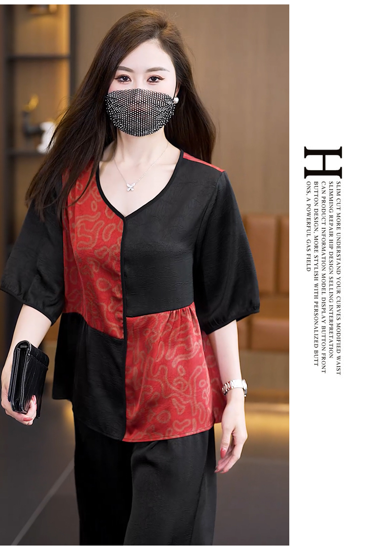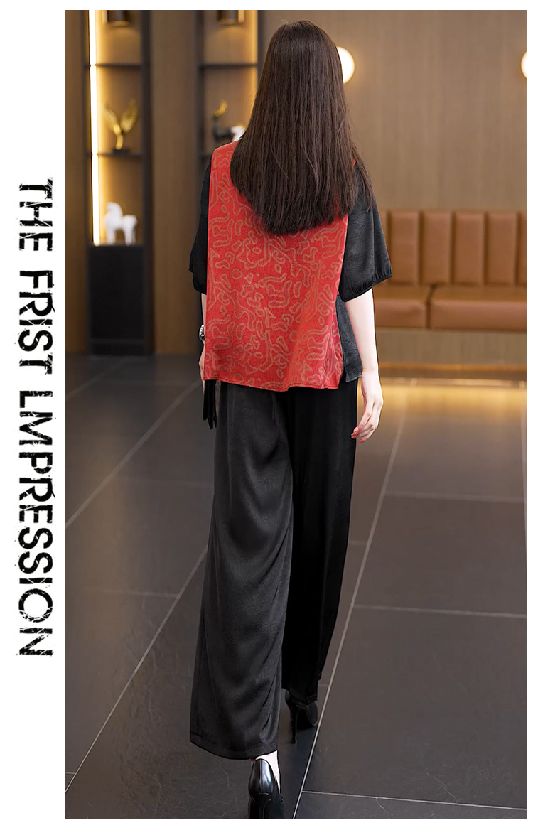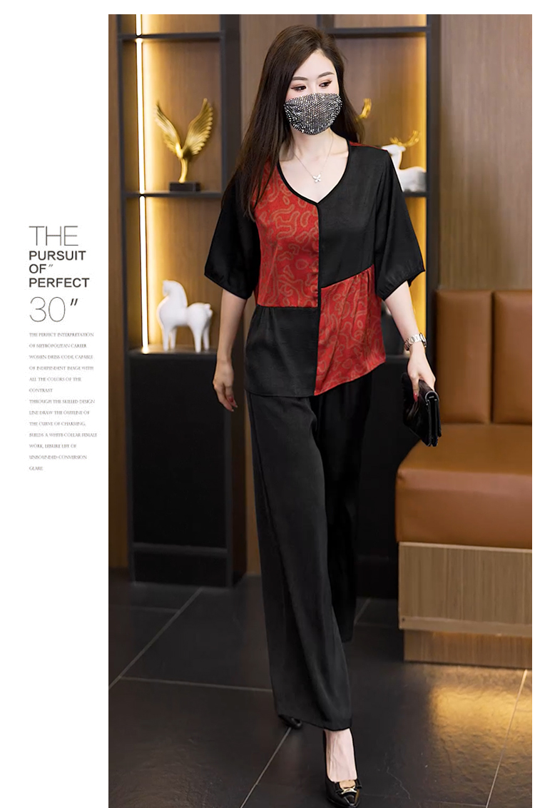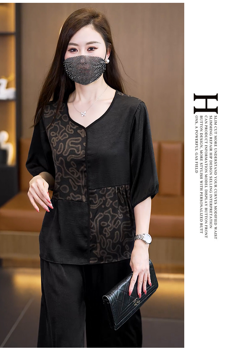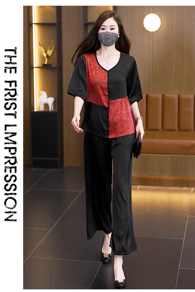 중년 엄마 여름 드레스 패션 세트 루즈핏 와이드 레그 팬츠 외국 가스 빅 사이즈 여성 의류 아세트산 공단 고급 투피스 세트