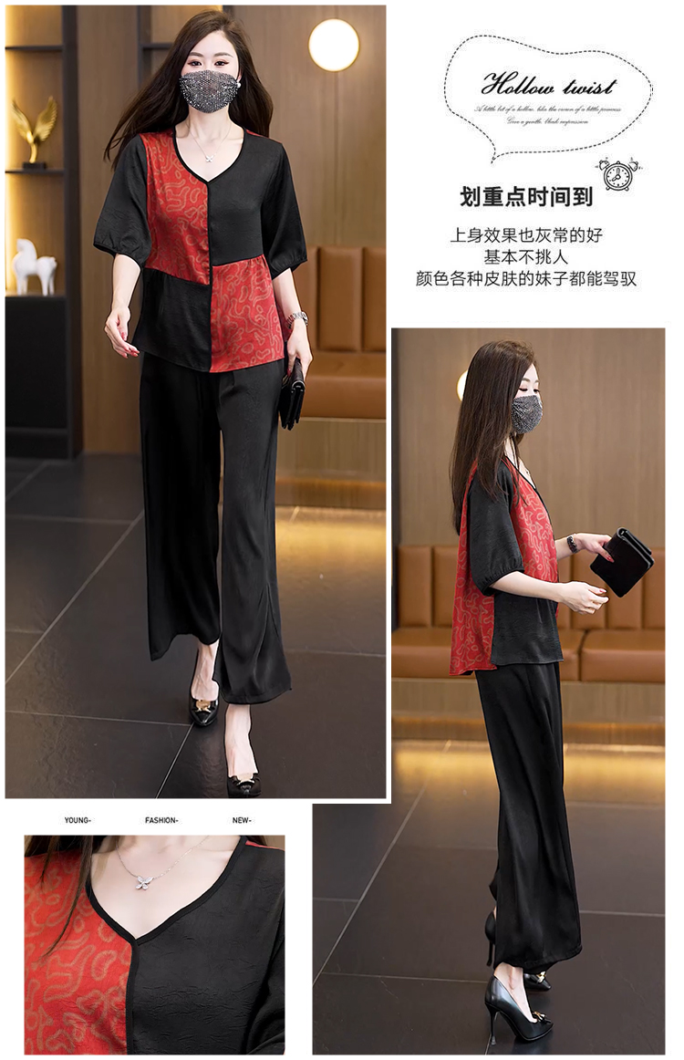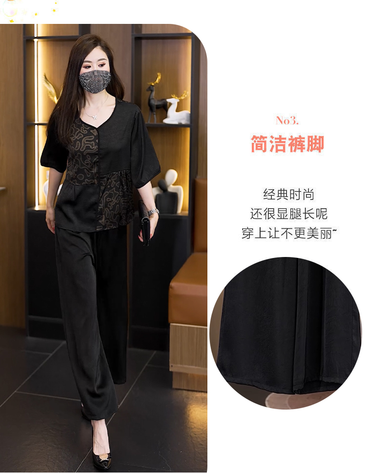 여름 새로운 어머니 드레스 중년 여성 투피스 세트 패션 다용도 반팔 와이드 레그 팬츠 슬림해 보이는 세트