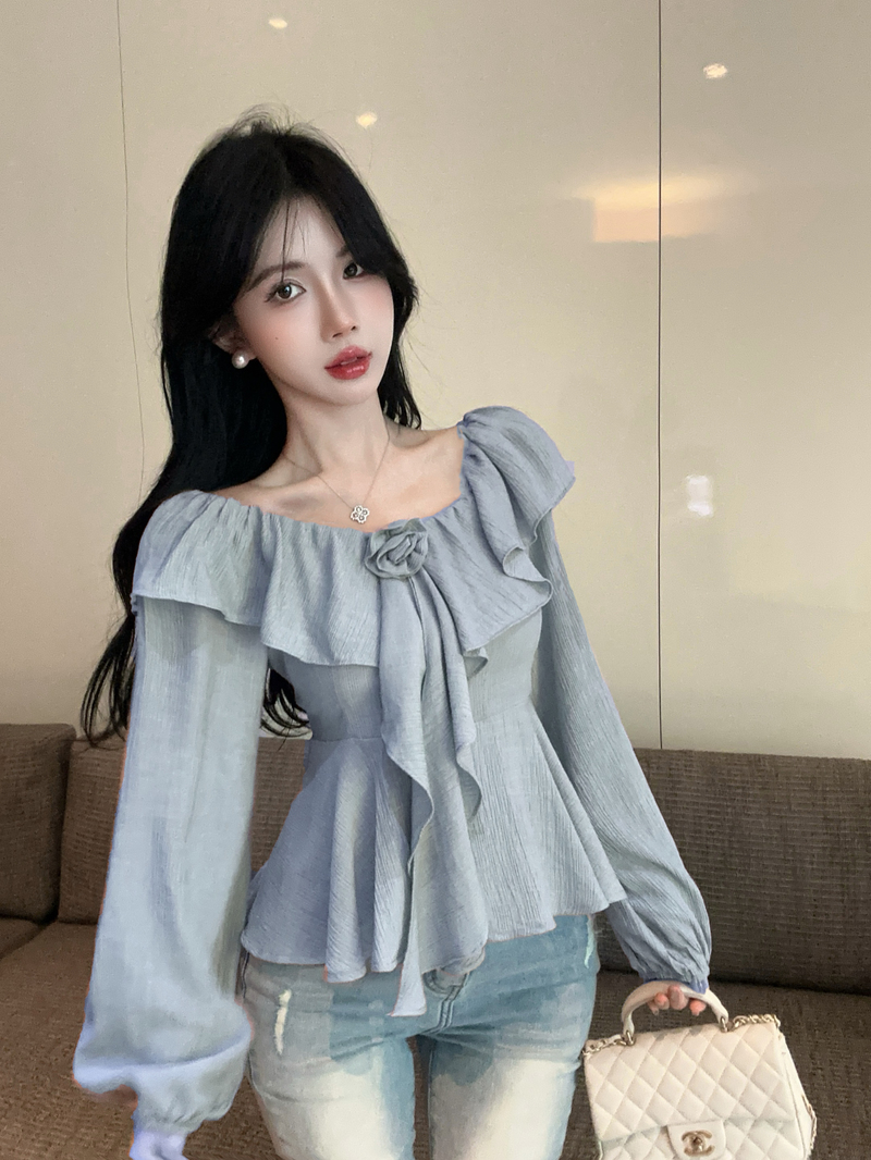 실사 정가 디자인 센스 Feifei 소매 레이스 업 셔츠 슬림해 보이는 바지 투피스 슈트