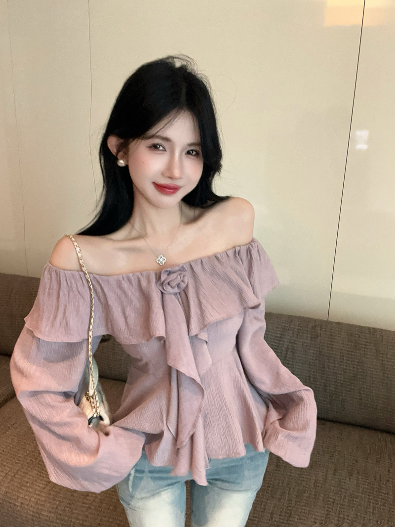 실사 정가 2026 여름 새로운 디자인 센스 오프숄더 비스듬한 칼라 티셔츠 반팔 여성 몸매 가꾸기 슬림해 보이는 맨위