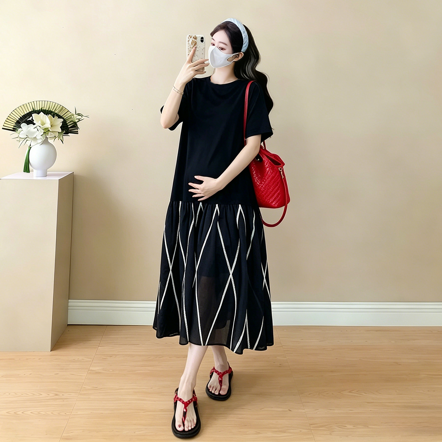 실사 임산부 캐주얼 미니멀리즘 반팔 드레스 여름 새로운 패션 드레스