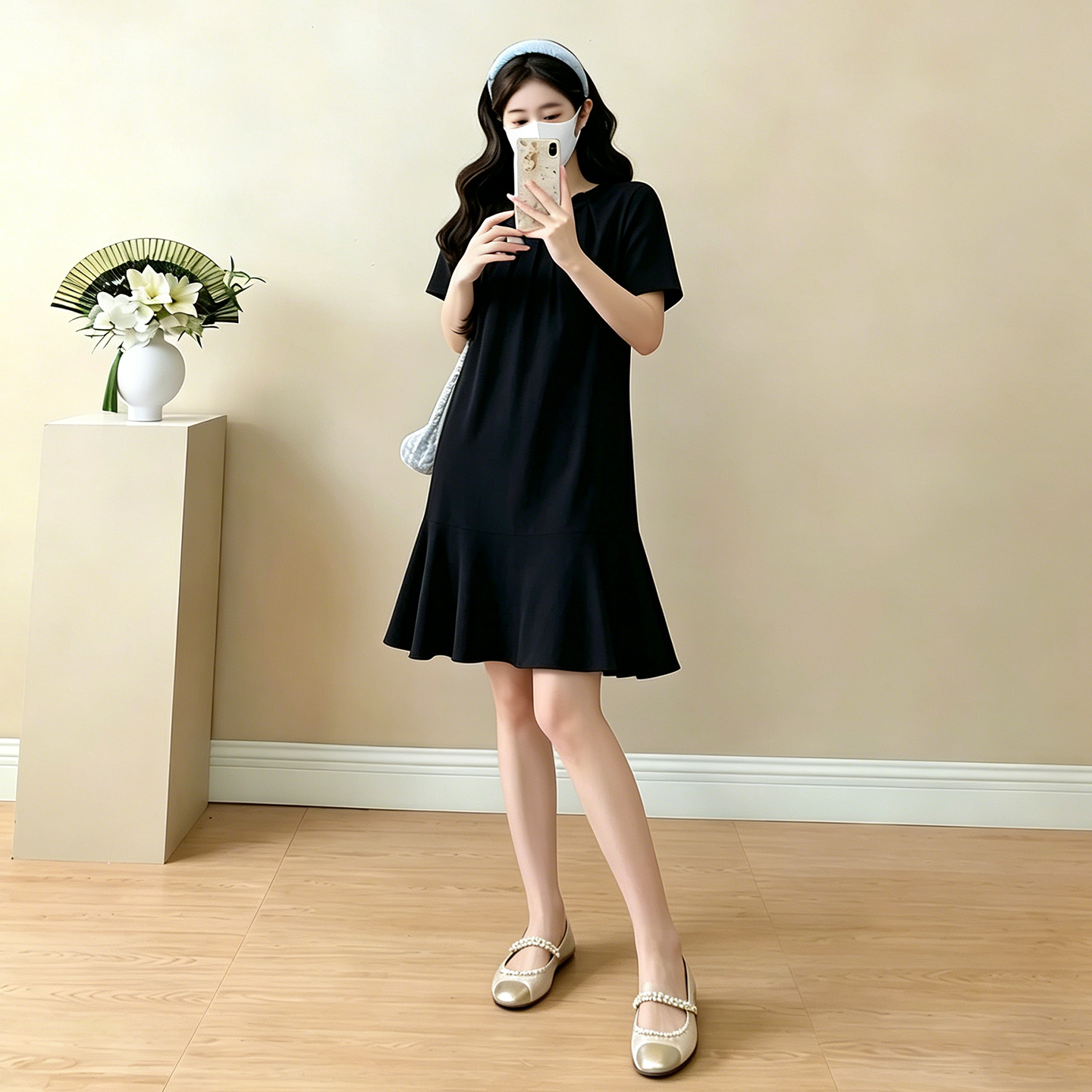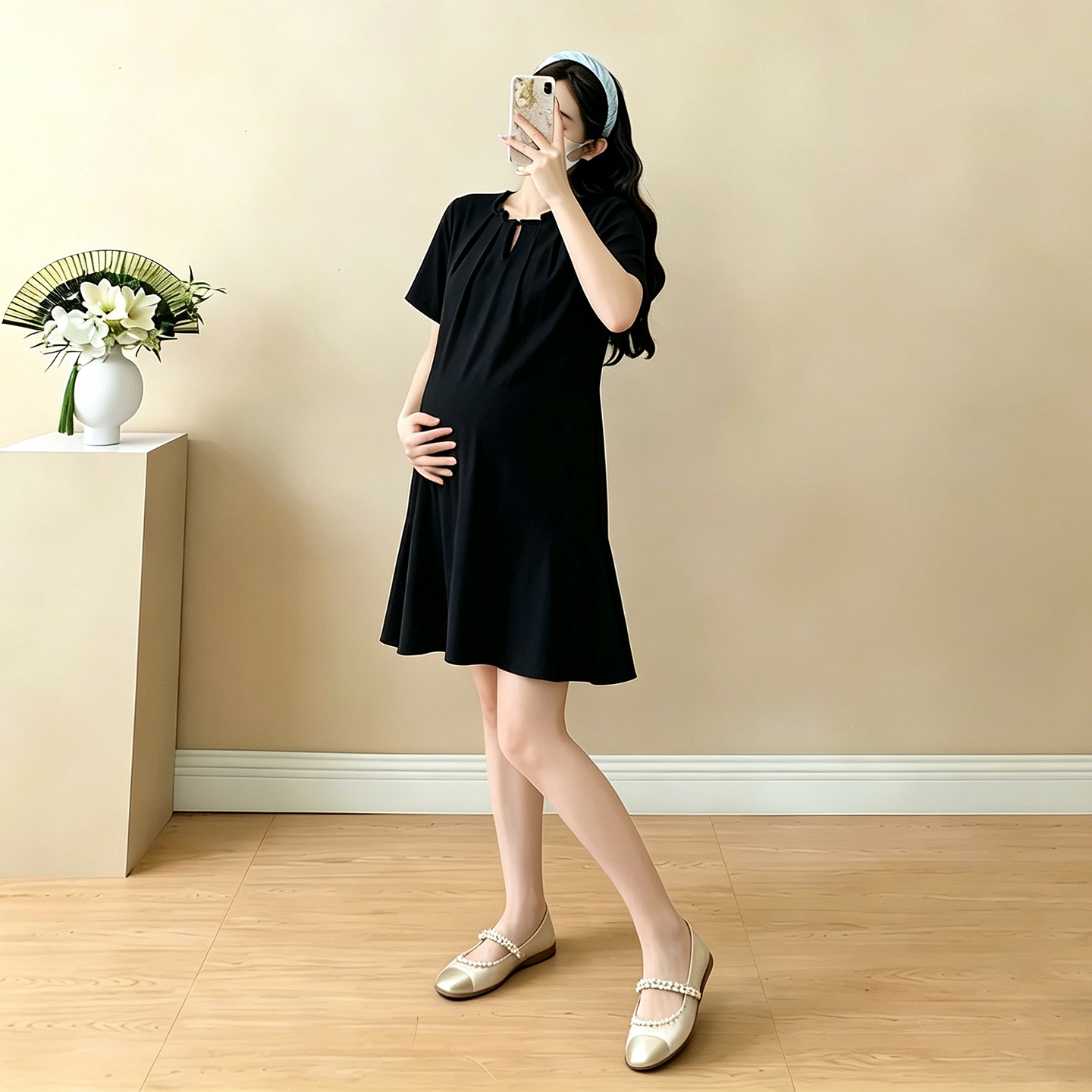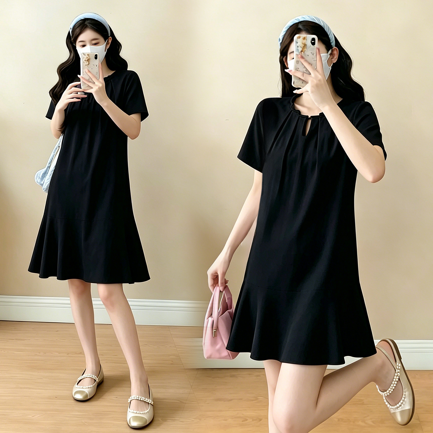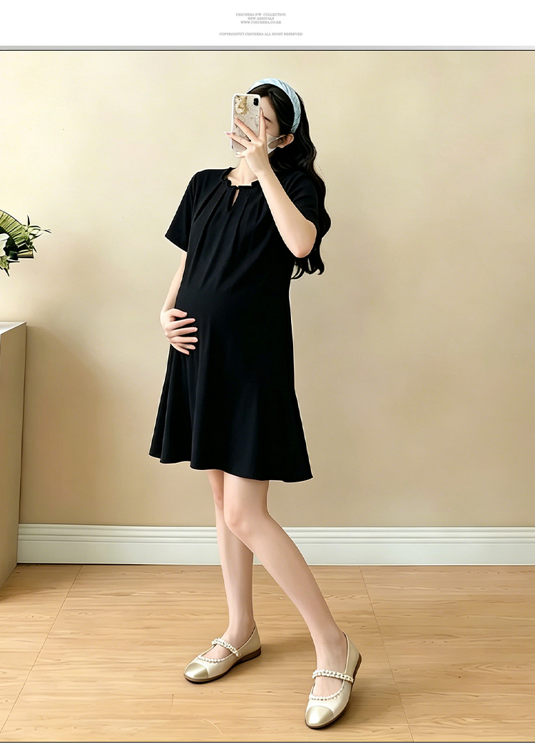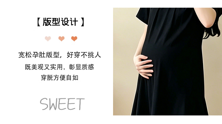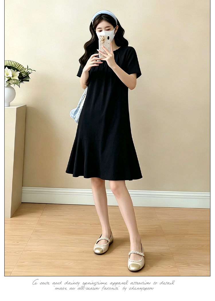 실사 임산부 캐주얼 미니멀리즘 반팔 드레스 여름 새로운 패션 드레스