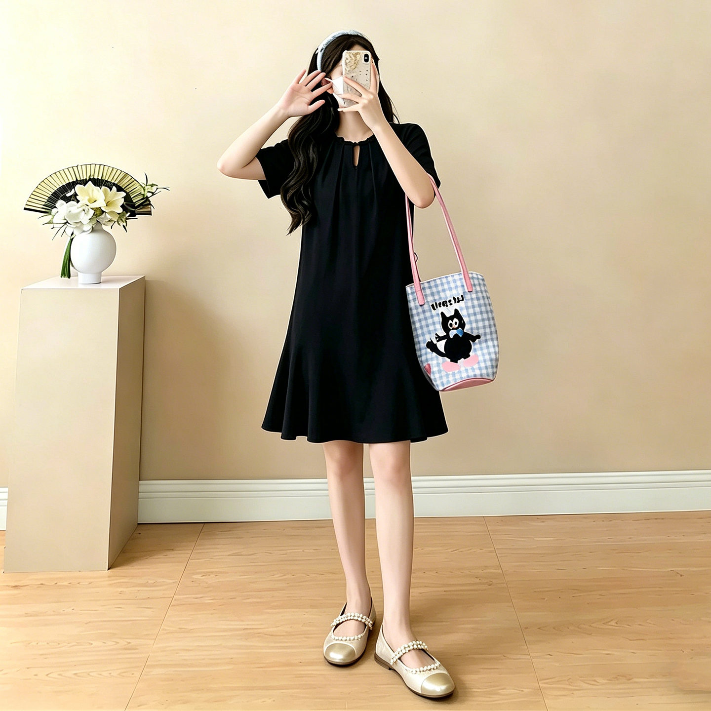 실사 임산부 루즈핏 슬림해 보이는 고급 센스 자수 치마 페이크 레이어드 반팔 드레스