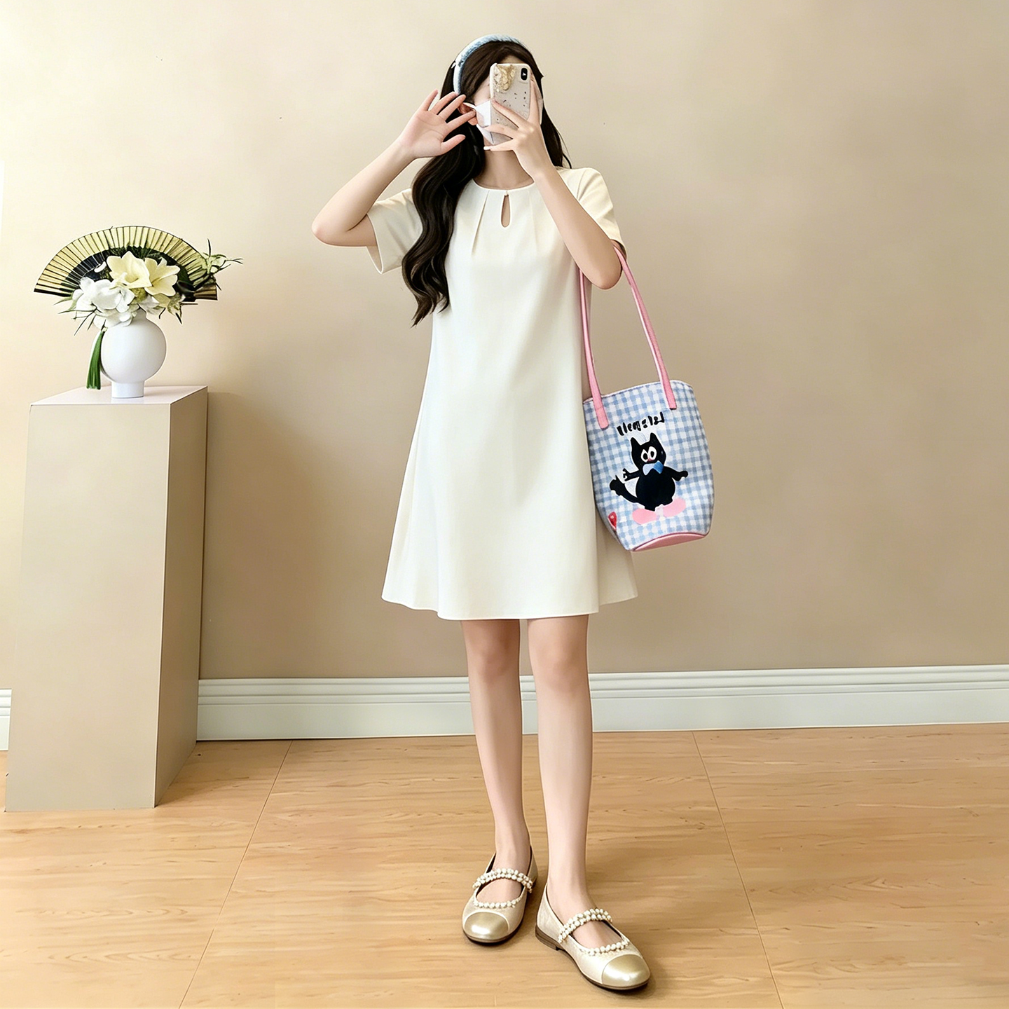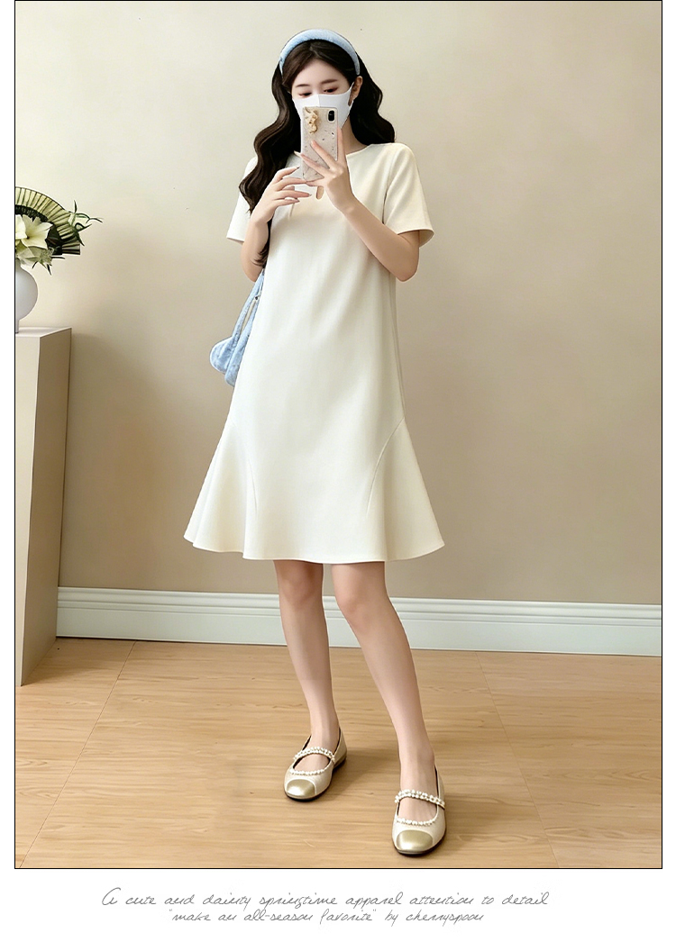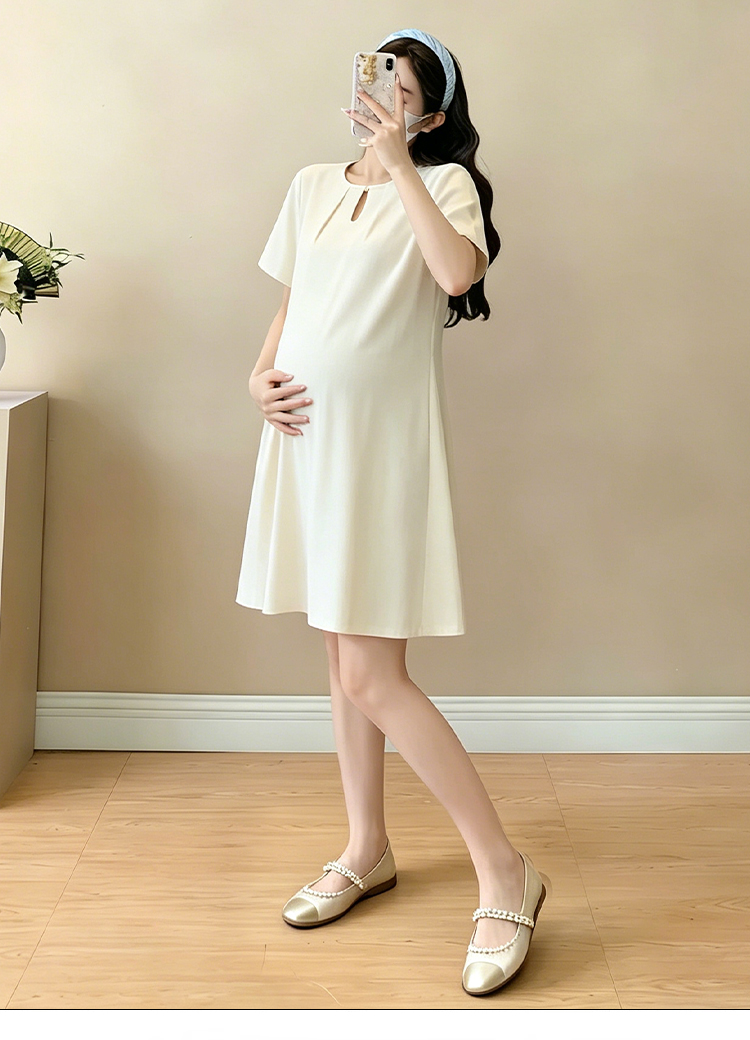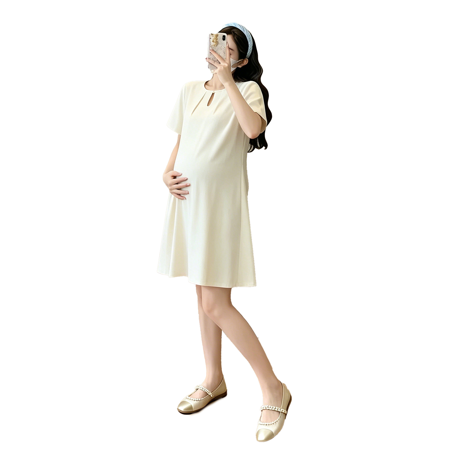 실사 임산부 캐주얼 미니멀리즘 반팔 드레스 여름 새로운 패션 드레스