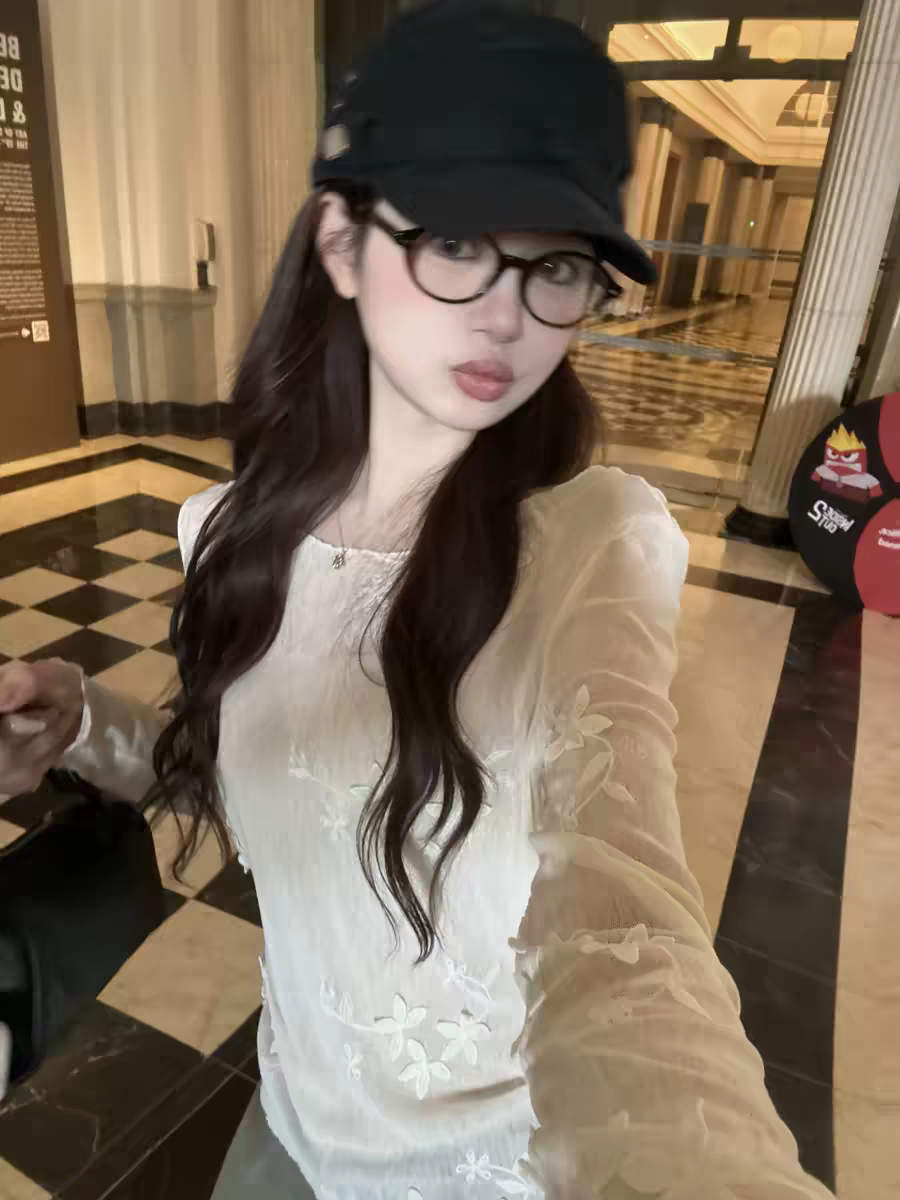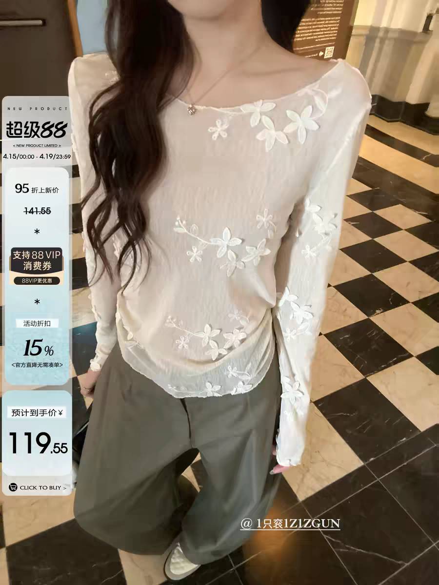 1개 다곤 1z1zgun 플라잉 플라워 꿈 나라 이른 봄 새로운 3 차원 자수 망사 긴팔 티셔츠 청 ~을 통해 태양 보호 셔츠